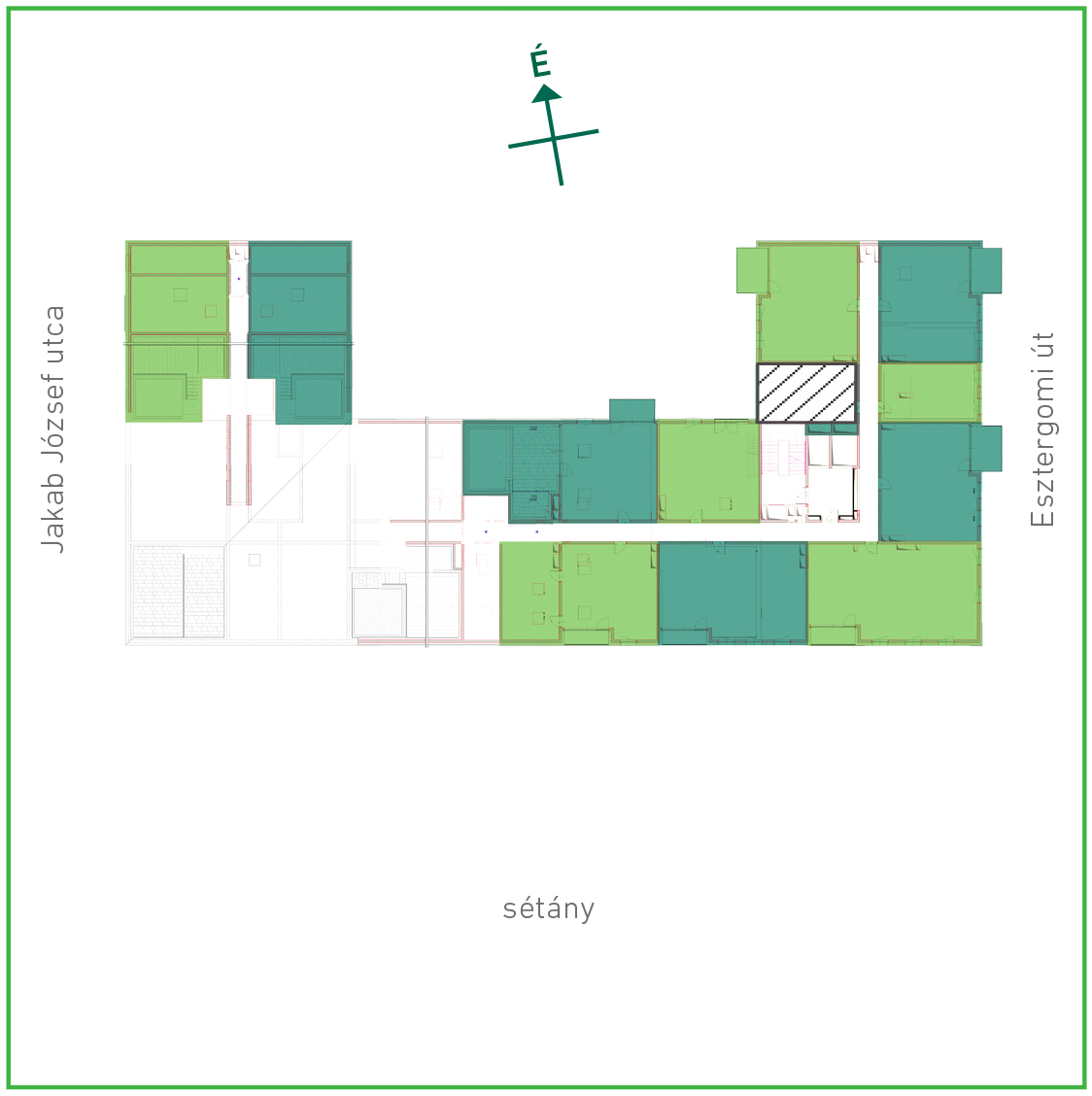 Az adatlapon megjelölt alaprajzi méretek vakolatlan falak közötti méretek, a kivitelezés során kismértékű méretváltozás lehetséges. Ezen dokumentációban közölt adatok a kiviteli tervek alapján kerültek megállapításra kizárólag tájékoztató jelleggel, nem minősülnek ajánlattételnek. Az alaprajzon feltüntetett bútorok tájékoztató jellegűek, azok rajzi elhelyezése nem feltétlenül tükrözi azok jövőbeni elhelyezhetőségét, illetve azok nem képzik a lakás részét.