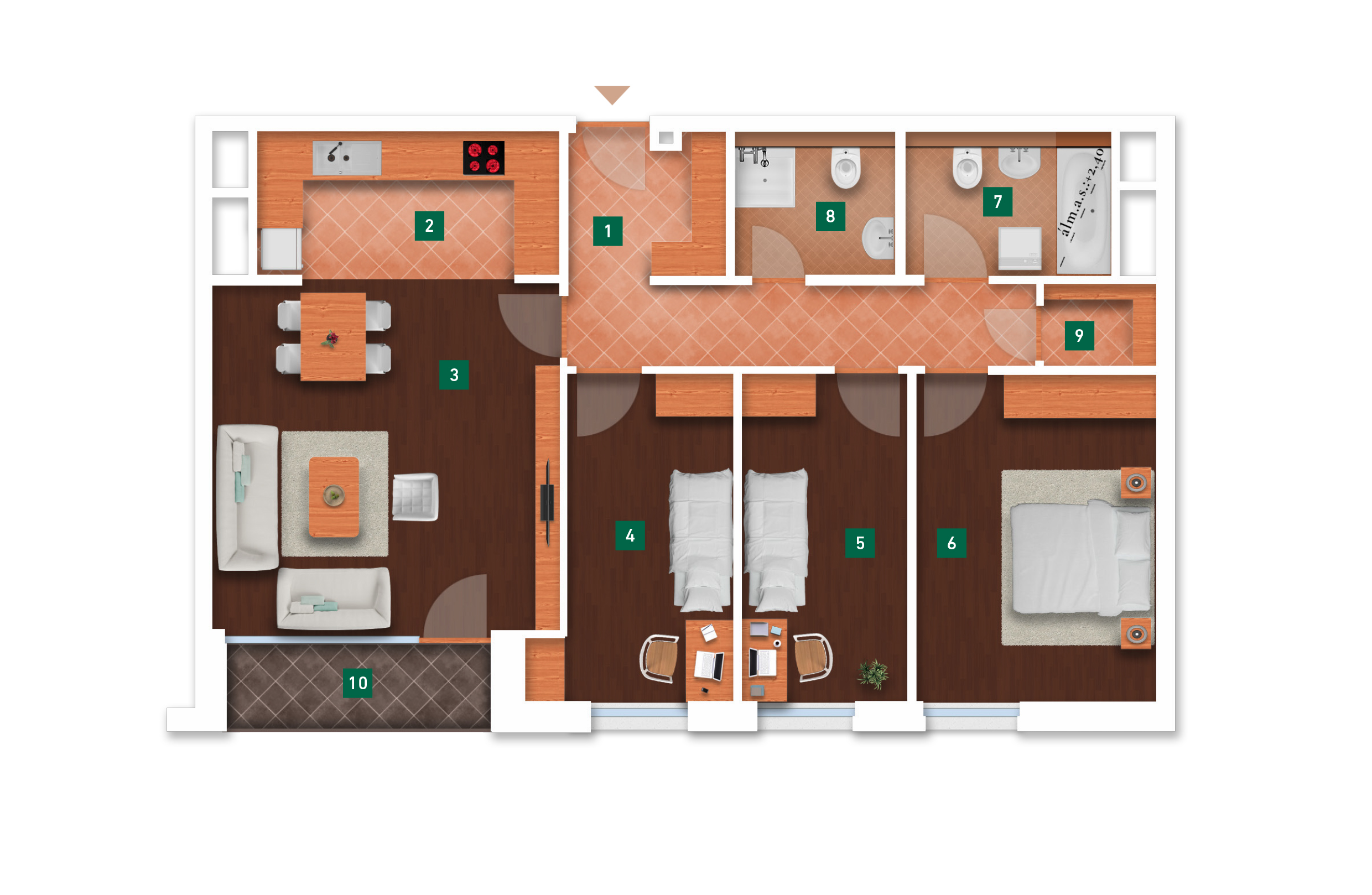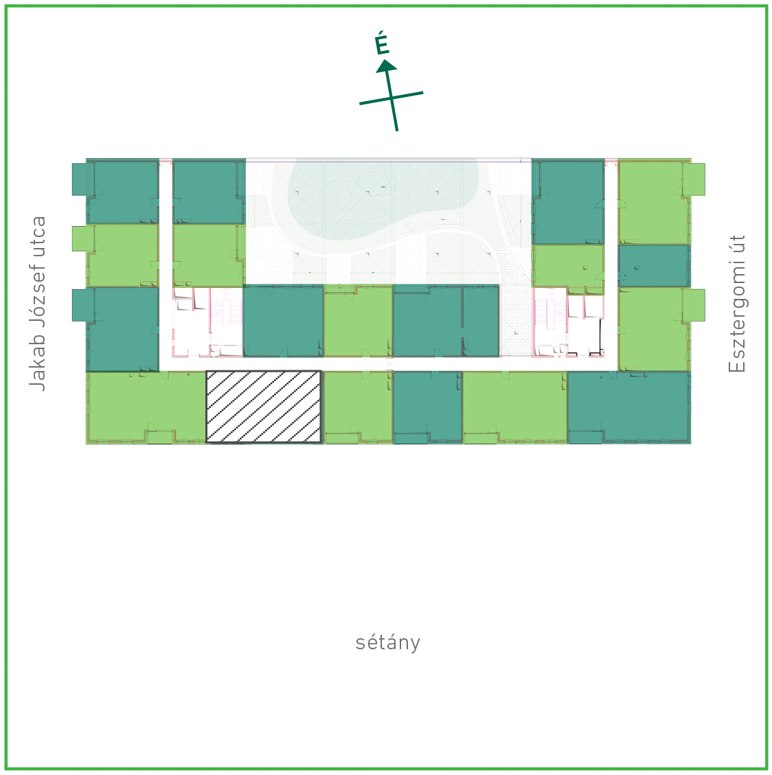 Az adatlapon megjelölt alaprajzi méretek vakolatlan falak közötti méretek, a kivitelezés során kismértékű méretváltozás lehetséges. Ezen dokumentációban közölt adatok a kiviteli tervek alapján kerültek megállapításra kizárólag tájékoztató jelleggel, nem minősülnek ajánlattételnek. Az alaprajzon feltüntetett bútorok tájékoztató jellegűek, azok rajzi elhelyezése nem feltétlenül tükrözi azok jövőbeni elhelyezhetőségét, illetve azok nem képzik a lakás részét.