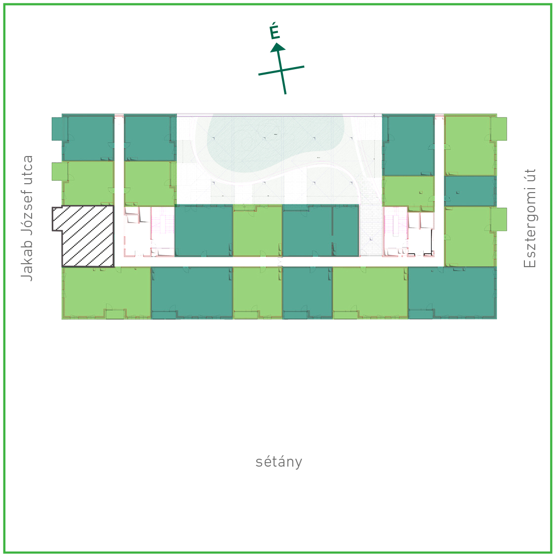 Az adatlapon megjelölt alaprajzi méretek vakolatlan falak közötti méretek, a kivitelezés során kismértékű méretváltozás lehetséges. Ezen dokumentációban közölt adatok a kiviteli tervek alapján kerültek megállapításra kizárólag tájékoztató jelleggel, nem minősülnek ajánlattételnek. Az alaprajzon feltüntetett bútorok tájékoztató jellegűek, azok rajzi elhelyezése nem feltétlenül tükrözi azok jövőbeni elhelyezhetőségét, illetve azok nem képzik a lakás részét.