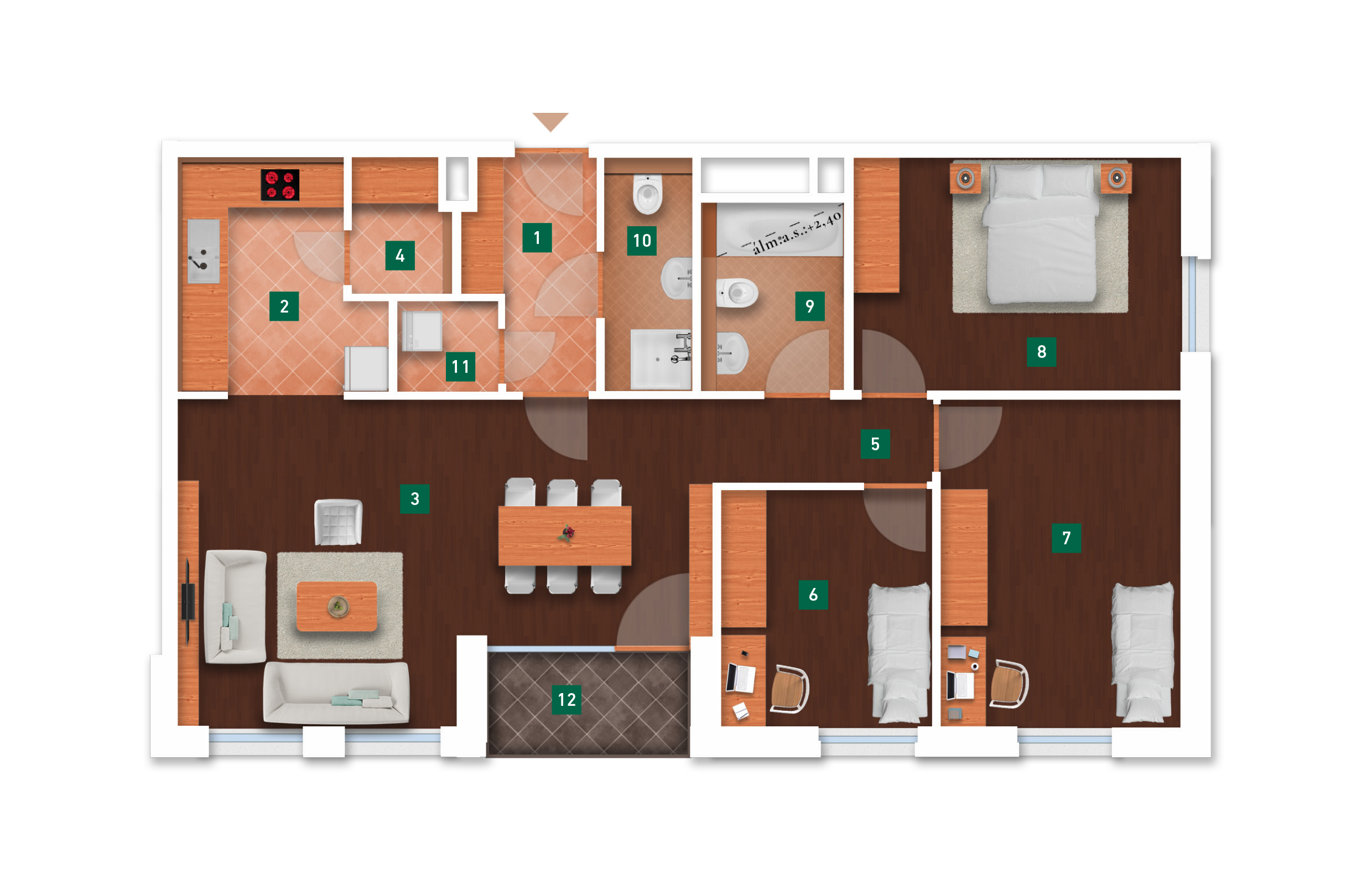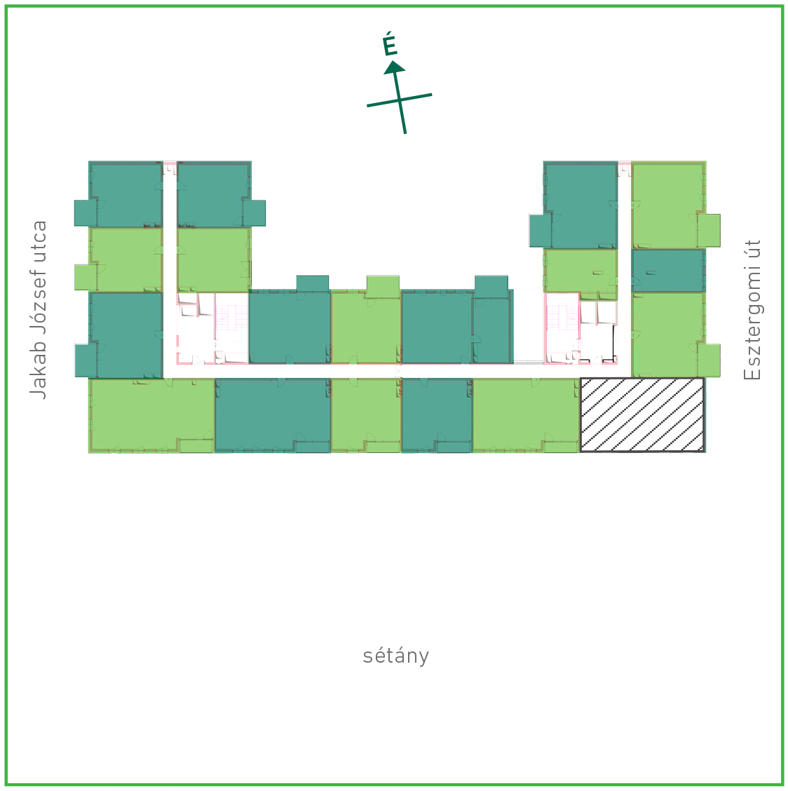 Az adatlapon megjelölt alaprajzi méretek vakolatlan falak közötti méretek, a kivitelezés során kismértékű méretváltozás lehetséges. Ezen dokumentációban közölt adatok a kiviteli tervek alapján kerültek megállapításra kizárólag tájékoztató jelleggel, nem minősülnek ajánlattételnek. Az alaprajzon feltüntetett bútorok tájékoztató jellegűek, azok rajzi elhelyezése nem feltétlenül tükrözi azok jövőbeni elhelyezhetőségét, illetve azok nem képzik a lakás részét.