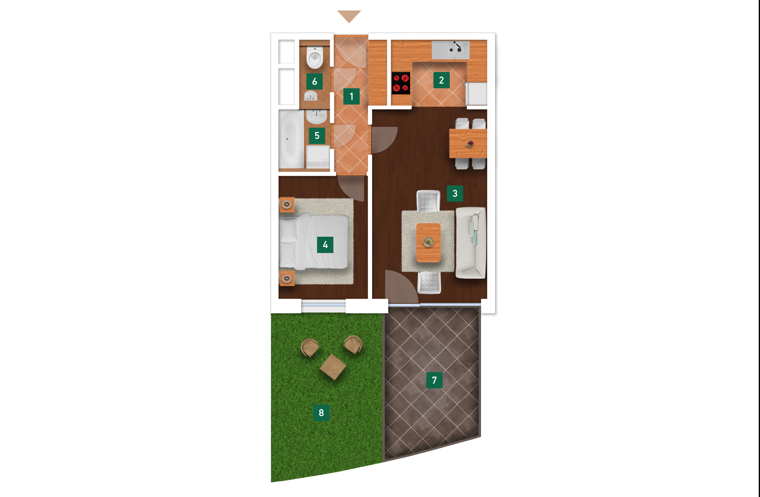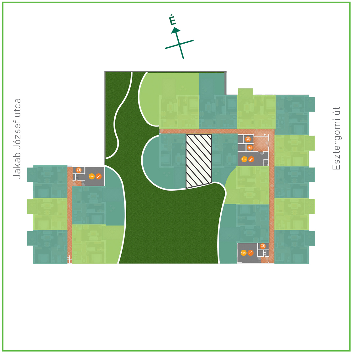Az adatlapon megjelölt alaprajzi méretek vakolatlan falak közötti méretek, a kivitelezés során kismértékű méretváltozás lehetséges. Ezen dokumentációban közölt adatok a kiviteli tervek alapján kerültek megállapításra kizárólag tájékoztató jelleggel, nem minősülnek ajánlattételnek. Az alaprajzon feltüntetett bútorok tájékoztató jellegűek, azok rajzi elhelyezése nem feltétlenül tükrözi azok jövőbeni elhelyezhetőségét, illetve azok nem képzik a lakás részét.