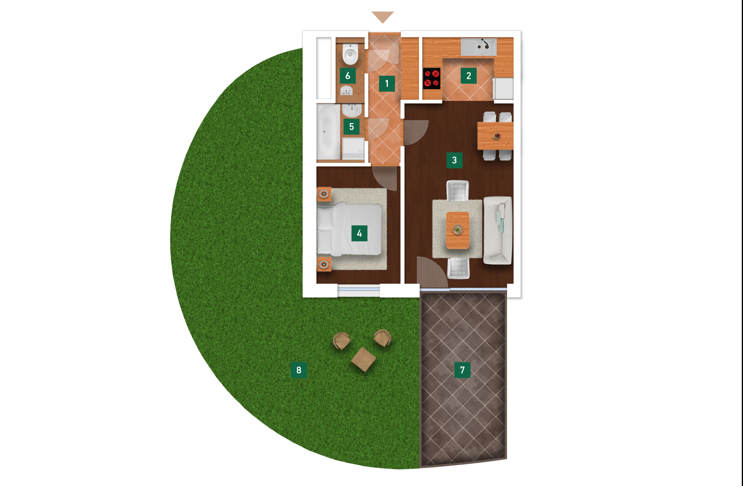 Az adatlapon megjelölt alaprajzi méretek vakolatlan falak közötti méretek, a kivitelezés során kismértékű méretváltozás lehetséges. Ezen dokumentációban közölt adatok a kiviteli tervek alapján kerültek megállapításra kizárólag tájékoztató jelleggel, nem minősülnek ajánlattételnek. Az alaprajzon feltüntetett bútorok tájékoztató jellegűek, azok rajzi elhelyezése nem feltétlenül tükrözi azok jövőbeni elhelyezhetőségét, illetve azok nem képzik a lakás részét.