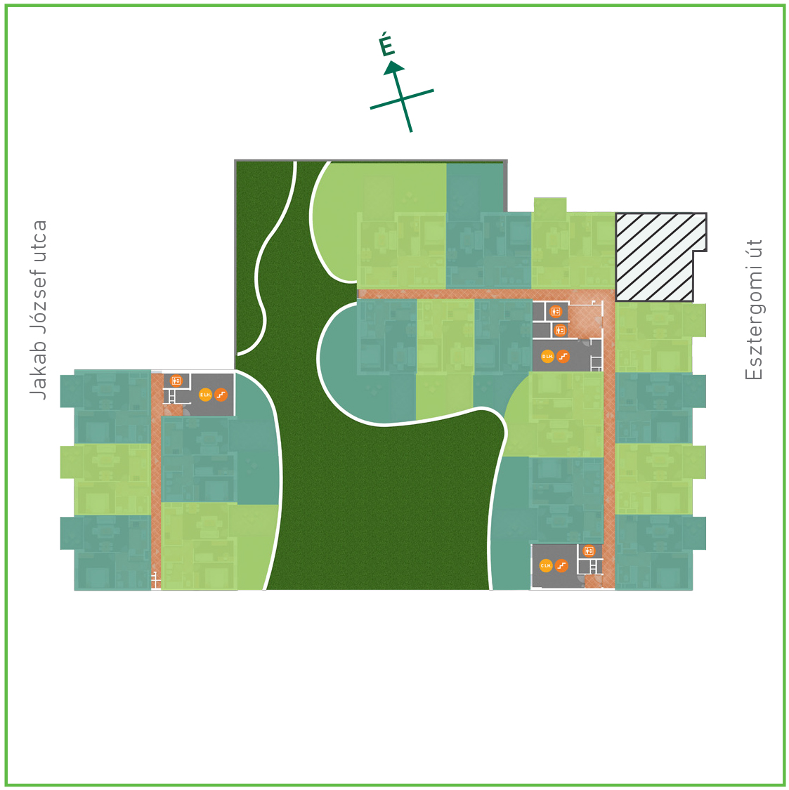 Az adatlapon megjelölt alaprajzi méretek vakolatlan falak közötti méretek, a kivitelezés során kismértékű méretváltozás lehetséges. Ezen dokumentációban közölt adatok a kiviteli tervek alapján kerültek megállapításra kizárólag tájékoztató jelleggel, nem minősülnek ajánlattételnek. Az alaprajzon feltüntetett bútorok tájékoztató jellegűek, azok rajzi elhelyezése nem feltétlenül tükrözi azok jövőbeni elhelyezhetőségét, illetve azok nem képzik a lakás részét.