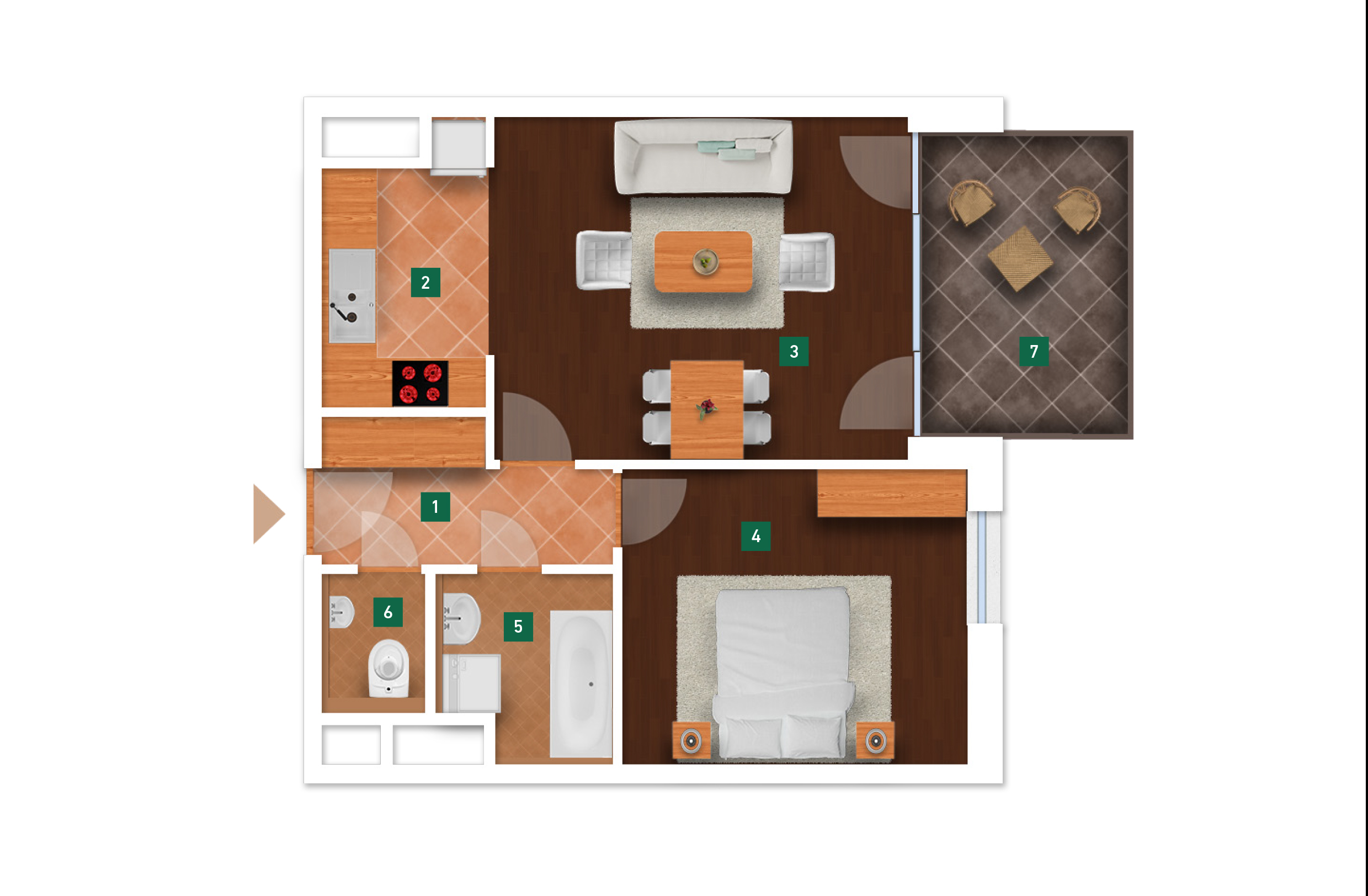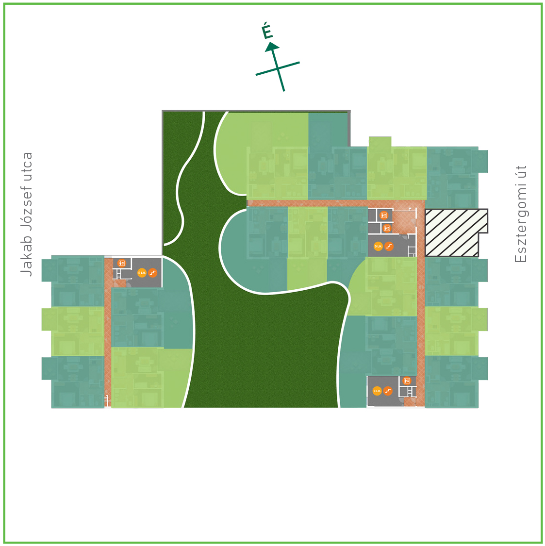 Az adatlapon megjelölt alaprajzi méretek vakolatlan falak közötti méretek, a kivitelezés során kismértékű méretváltozás lehetséges. Ezen dokumentációban közölt adatok a kiviteli tervek alapján kerültek megállapításra kizárólag tájékoztató jelleggel, nem minősülnek ajánlattételnek. Az alaprajzon feltüntetett bútorok tájékoztató jellegűek, azok rajzi elhelyezése nem feltétlenül tükrözi azok jövőbeni elhelyezhetőségét, illetve azok nem képzik a lakás részét.
