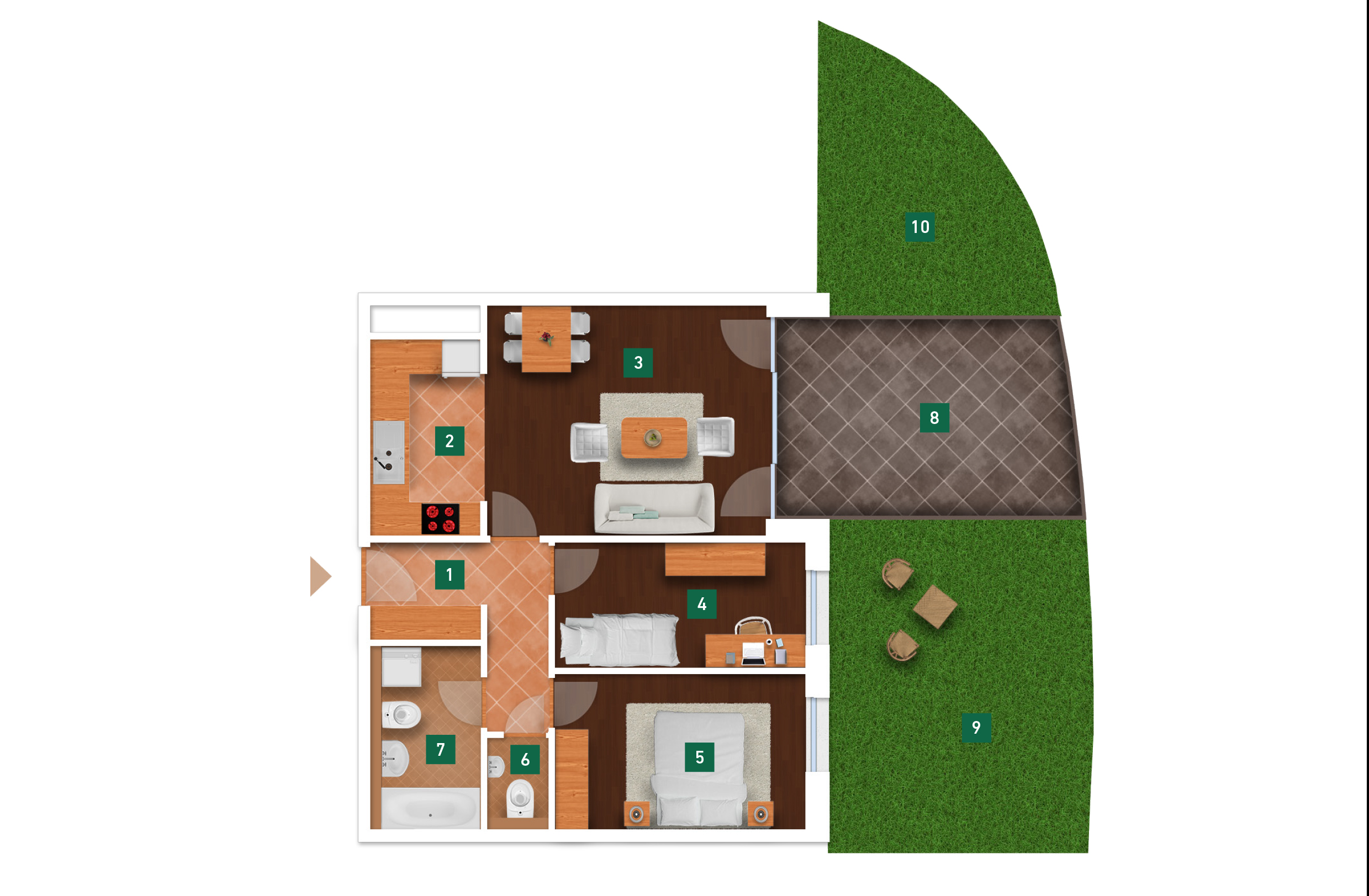 Az adatlapon megjelölt alaprajzi méretek vakolatlan falak közötti méretek, a kivitelezés során kismértékű méretváltozás lehetséges. Ezen dokumentációban közölt adatok a kiviteli tervek alapján kerültek megállapításra kizárólag tájékoztató jelleggel, nem minősülnek ajánlattételnek. Az alaprajzon feltüntetett bútorok tájékoztató jellegűek, azok rajzi elhelyezése nem feltétlenül tükrözi azok jövőbeni elhelyezhetőségét, illetve azok nem képzik a lakás részét.