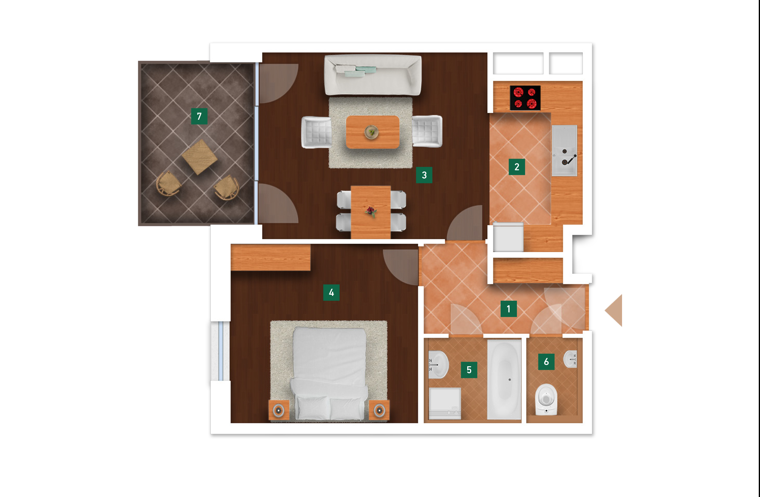 Az adatlapon megjelölt alaprajzi méretek vakolatlan falak közötti méretek, a kivitelezés során kismértékű méretváltozás lehetséges. Ezen dokumentációban közölt adatok a kiviteli tervek alapján kerültek megállapításra kizárólag tájékoztató jelleggel, nem minősülnek ajánlattételnek. Az alaprajzon feltüntetett bútorok tájékoztató jellegűek, azok rajzi elhelyezése nem feltétlenül tükrözi azok jövőbeni elhelyezhetőségét, illetve azok nem képzik a lakás részét.