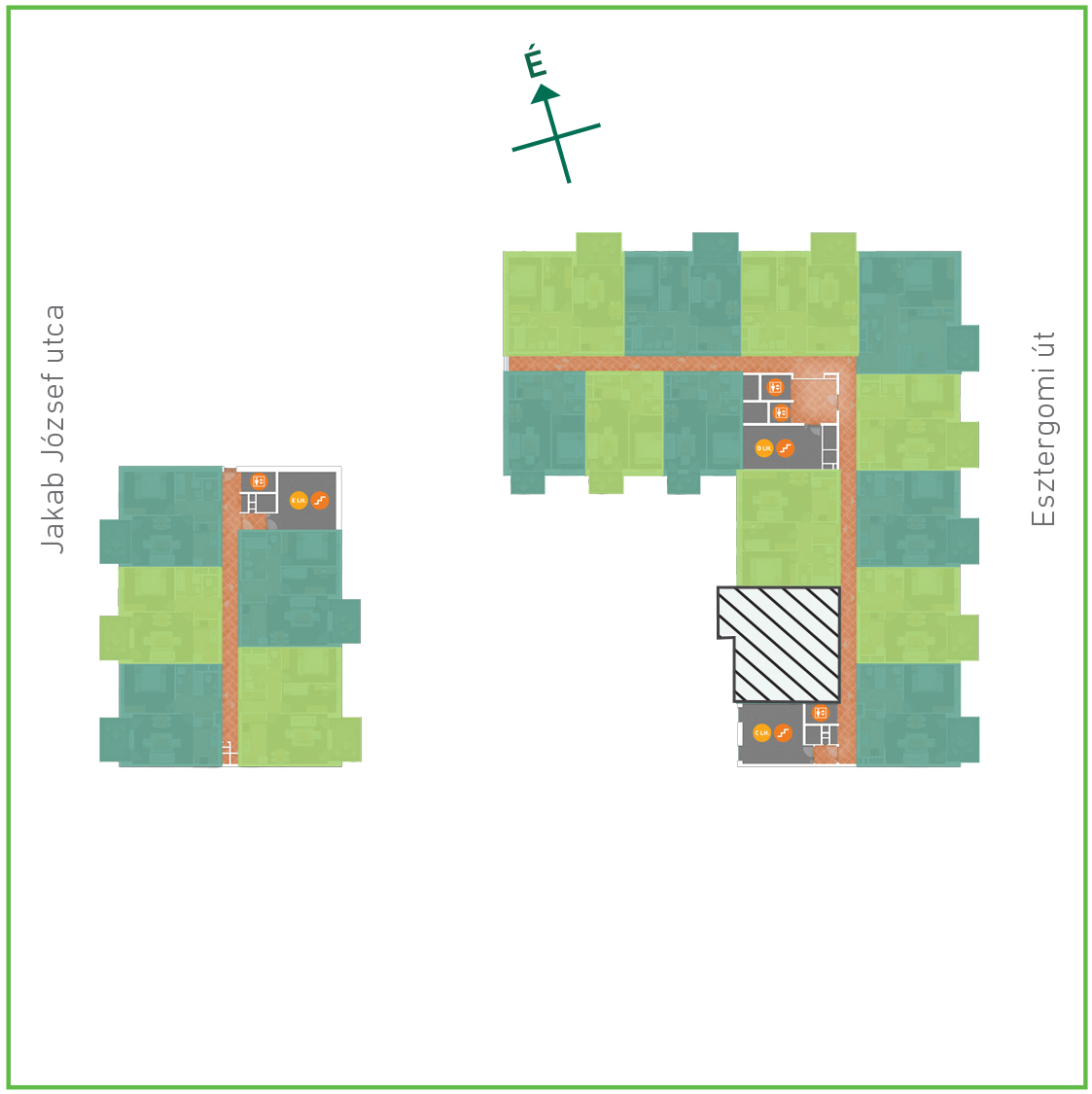 Az adatlapon megjelölt alaprajzi méretek vakolatlan falak közötti méretek, a kivitelezés során kismértékű méretváltozás lehetséges. Ezen dokumentációban közölt adatok a kiviteli tervek alapján kerültek megállapításra kizárólag tájékoztató jelleggel, nem minősülnek ajánlattételnek. Az alaprajzon feltüntetett bútorok tájékoztató jellegűek, azok rajzi elhelyezése nem feltétlenül tükrözi azok jövőbeni elhelyezhetőségét, illetve azok nem képzik a lakás részét.