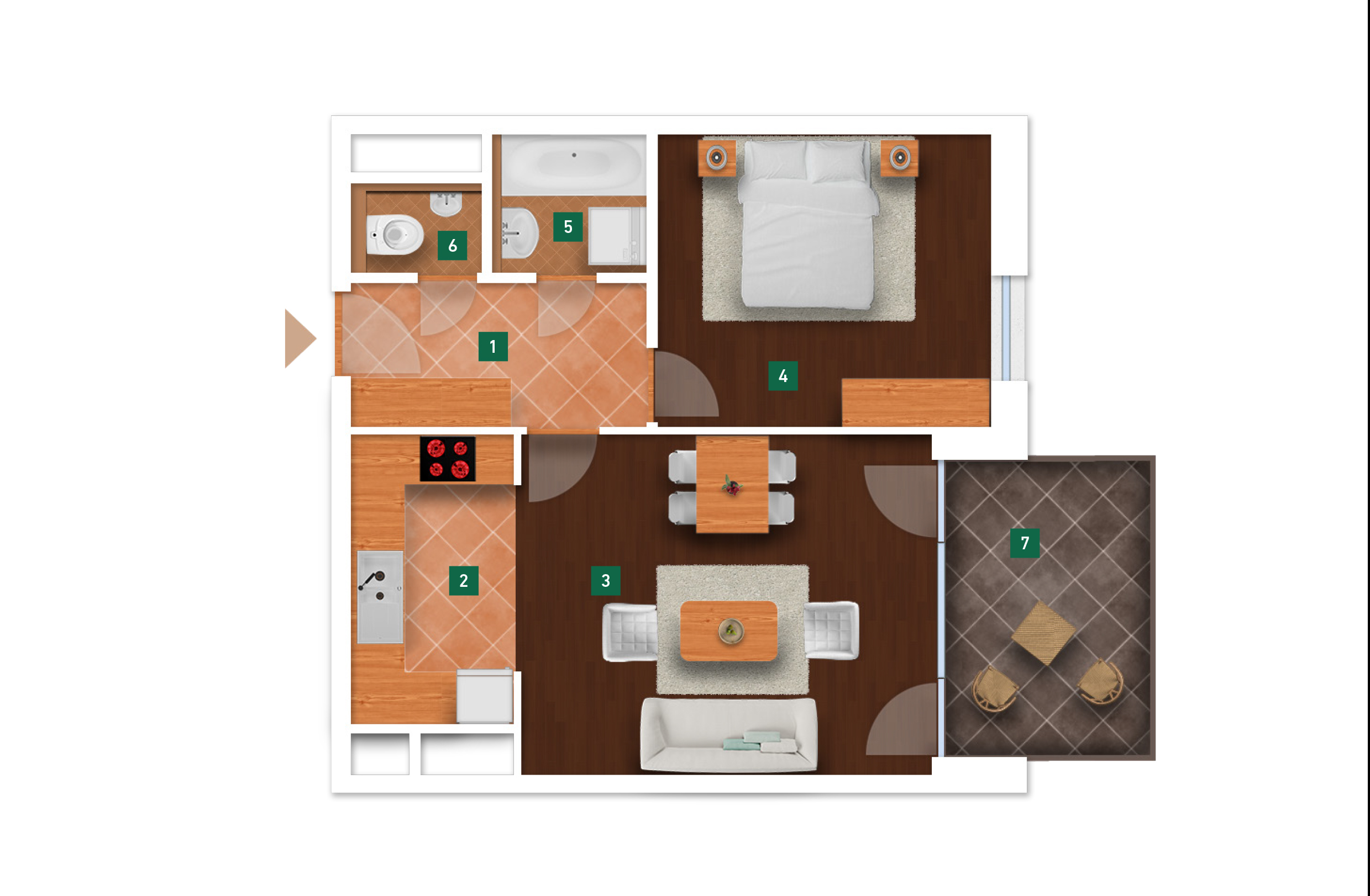 Az adatlapon megjelölt alaprajzi méretek vakolatlan falak közötti méretek, a kivitelezés során kismértékű méretváltozás lehetséges. Ezen dokumentációban közölt adatok a kiviteli tervek alapján kerültek megállapításra kizárólag tájékoztató jelleggel, nem minősülnek ajánlattételnek. Az alaprajzon feltüntetett bútorok tájékoztató jellegűek, azok rajzi elhelyezése nem feltétlenül tükrözi azok jövőbeni elhelyezhetőségét, illetve azok nem képzik a lakás részét.