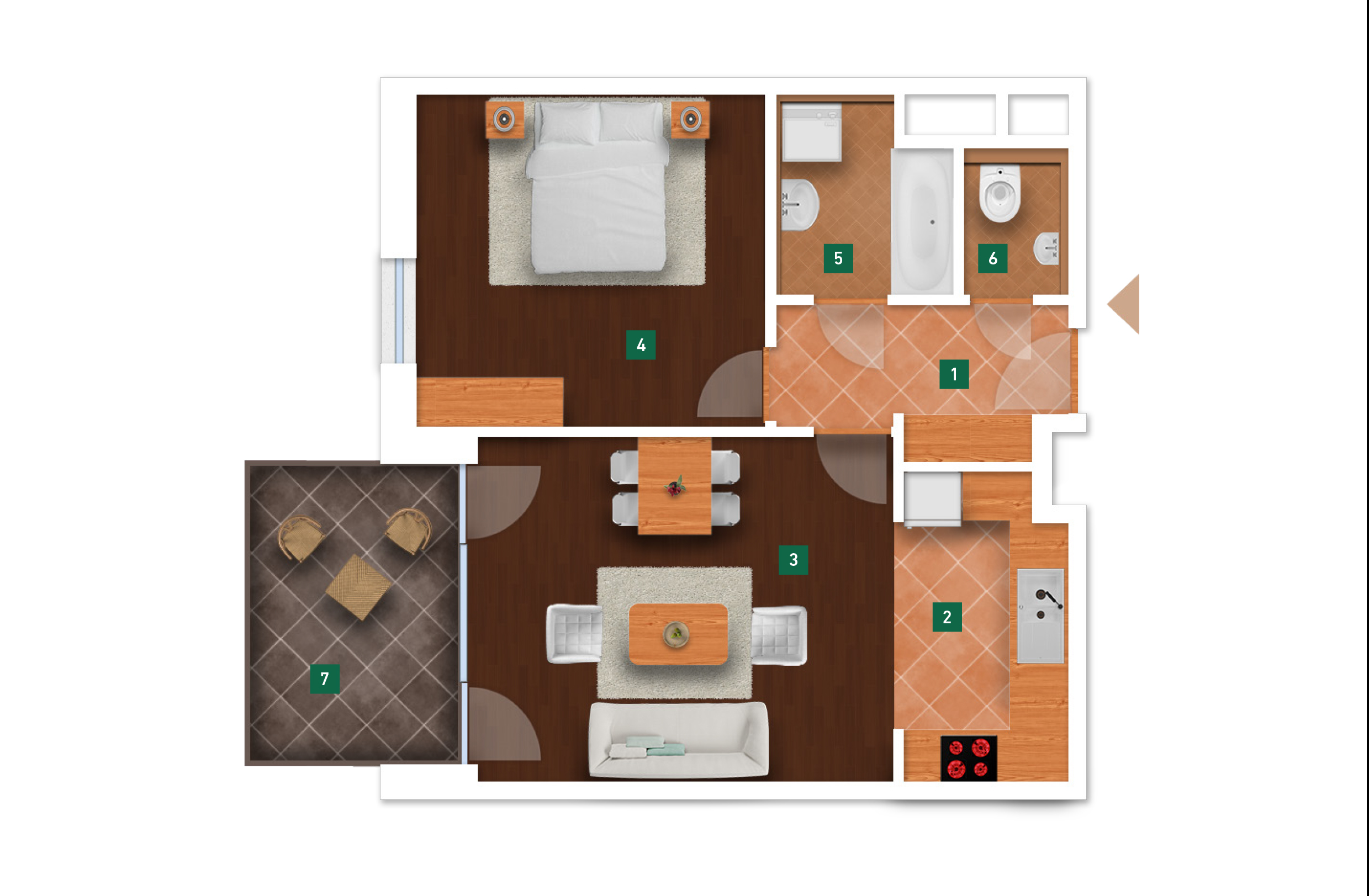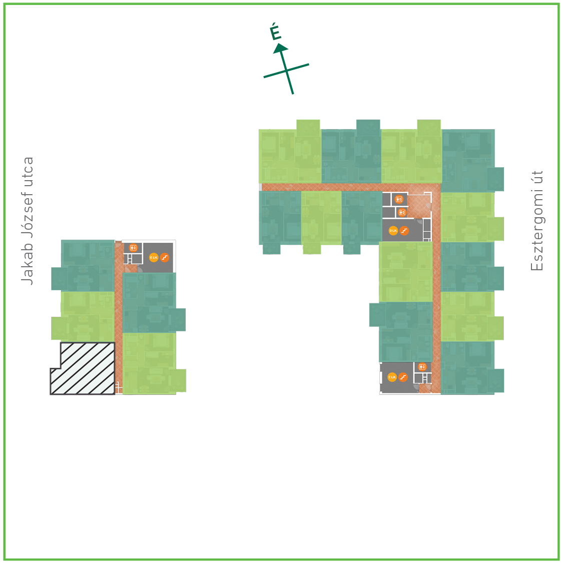Az adatlapon megjelölt alaprajzi méretek vakolatlan falak közötti méretek, a kivitelezés során kismértékű méretváltozás lehetséges. Ezen dokumentációban közölt adatok a kiviteli tervek alapján kerültek megállapításra kizárólag tájékoztató jelleggel, nem minősülnek ajánlattételnek. Az alaprajzon feltüntetett bútorok tájékoztató jellegűek, azok rajzi elhelyezése nem feltétlenül tükrözi azok jövőbeni elhelyezhetőségét, illetve azok nem képzik a lakás részét.