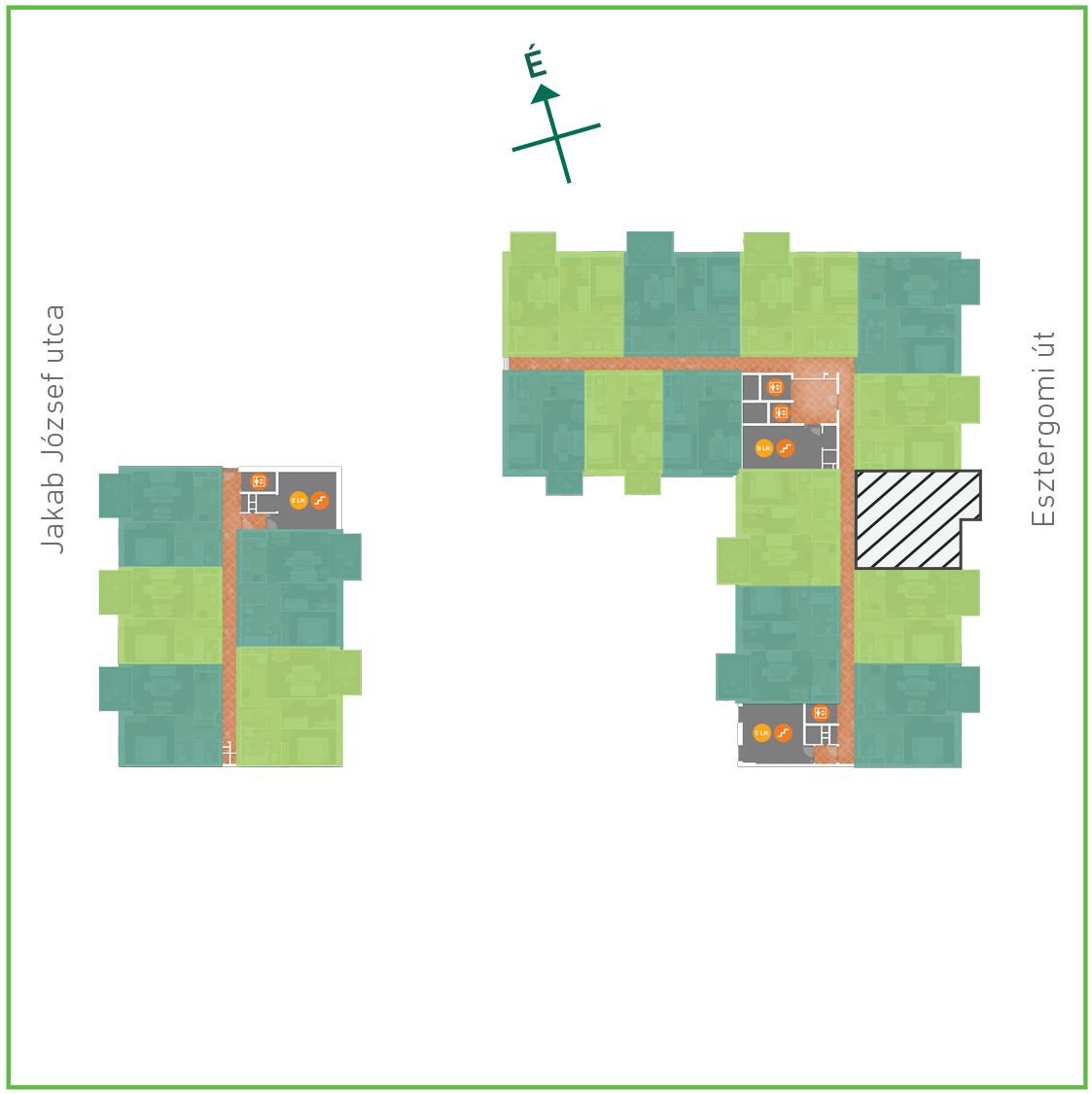 Az adatlapon megjelölt alaprajzi méretek vakolatlan falak közötti méretek, a kivitelezés során kismértékű méretváltozás lehetséges. Ezen dokumentációban közölt adatok a kiviteli tervek alapján kerültek megállapításra kizárólag tájékoztató jelleggel, nem minősülnek ajánlattételnek. Az alaprajzon feltüntetett bútorok tájékoztató jellegűek, azok rajzi elhelyezése nem feltétlenül tükrözi azok jövőbeni elhelyezhetőségét, illetve azok nem képzik a lakás részét.
