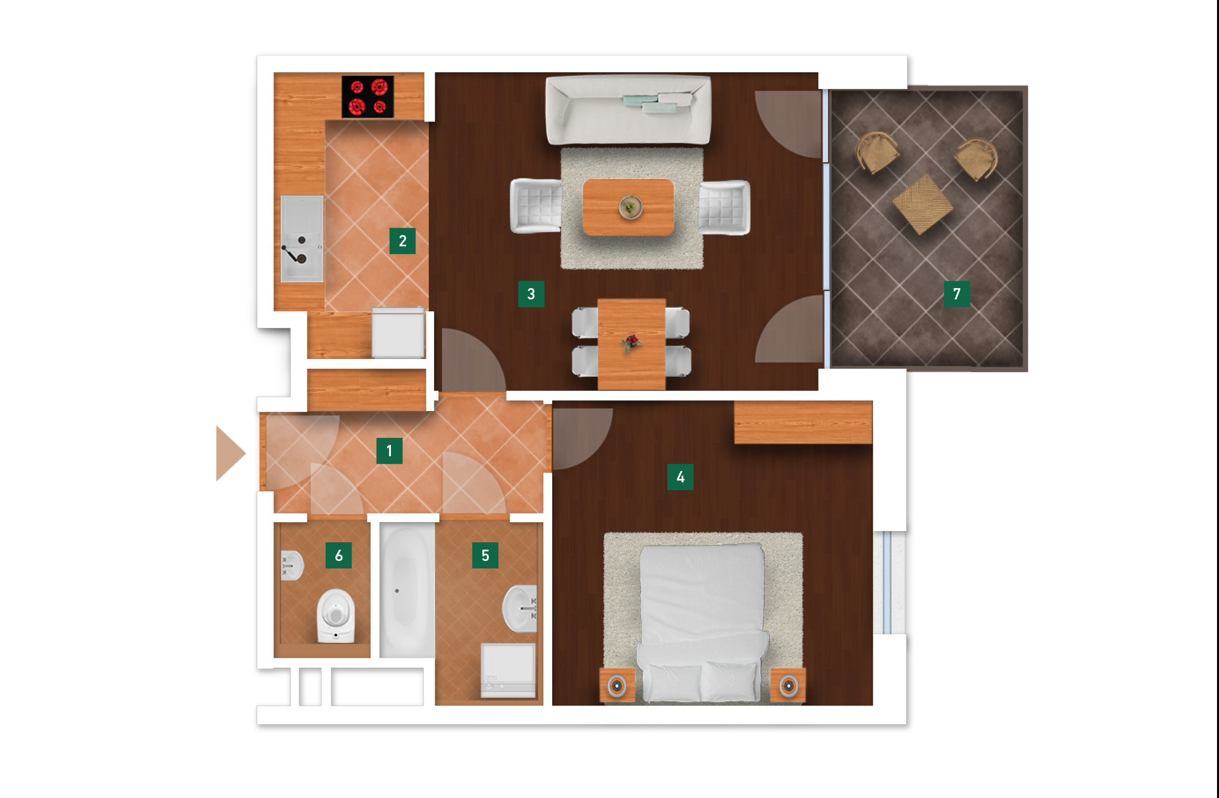 Az adatlapon megjelölt alaprajzi méretek vakolatlan falak közötti méretek, a kivitelezés során kismértékű méretváltozás lehetséges. Ezen dokumentációban közölt adatok a kiviteli tervek alapján kerültek megállapításra kizárólag tájékoztató jelleggel, nem minősülnek ajánlattételnek. Az alaprajzon feltüntetett bútorok tájékoztató jellegűek, azok rajzi elhelyezése nem feltétlenül tükrözi azok jövőbeni elhelyezhetőségét, illetve azok nem képzik a lakás részét.