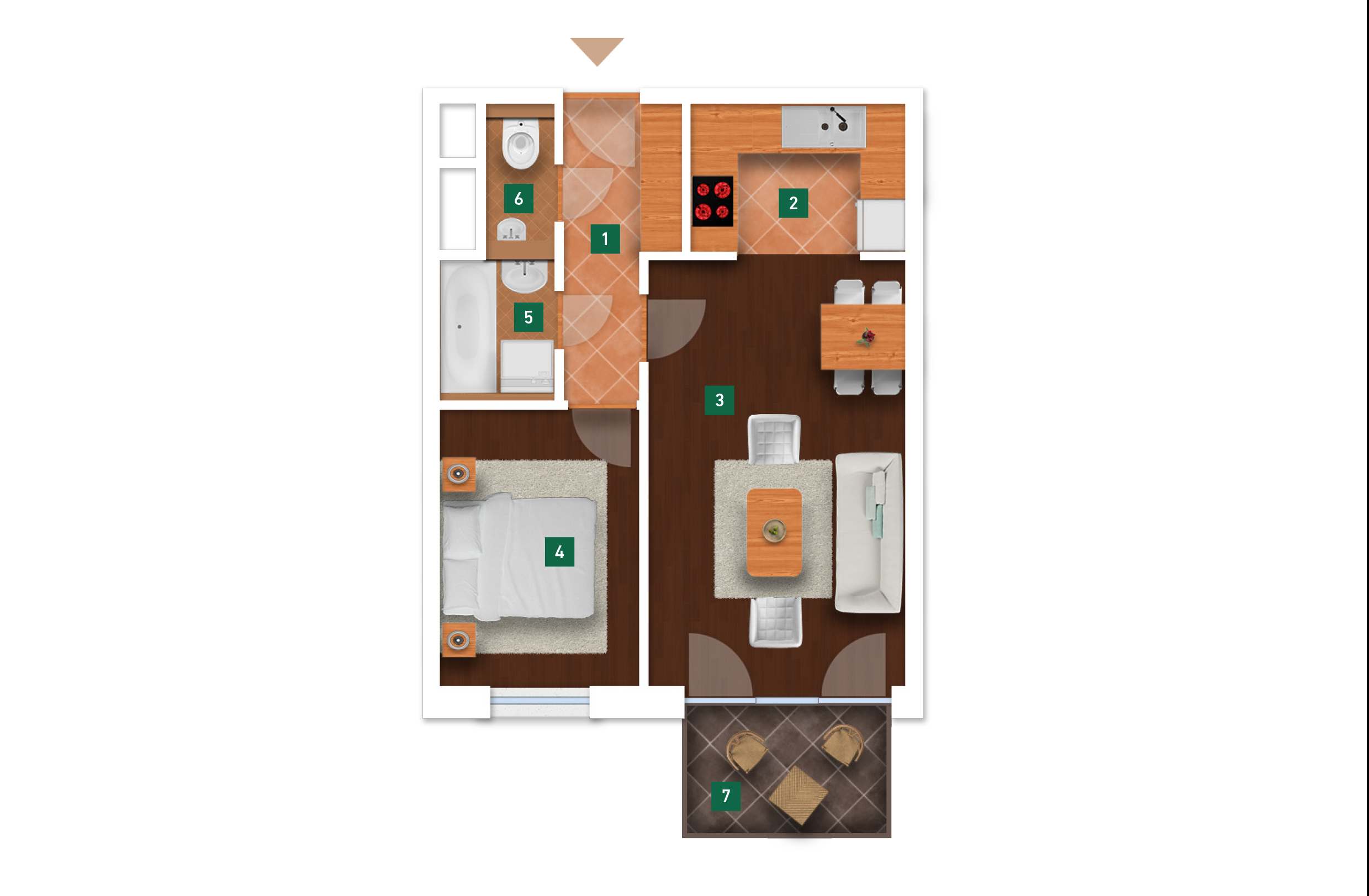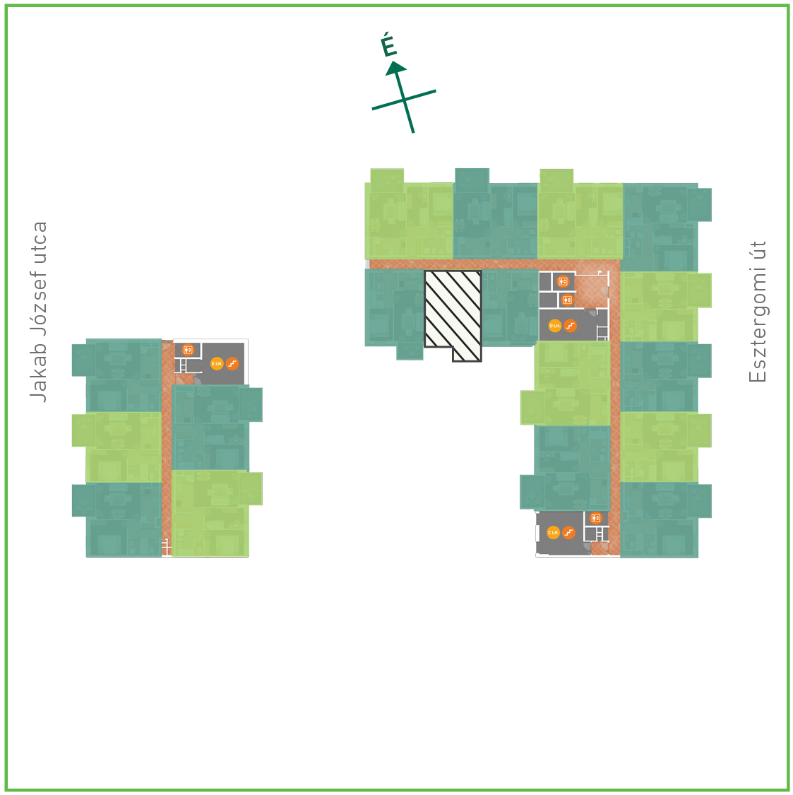 Az adatlapon megjelölt alaprajzi méretek vakolatlan falak közötti méretek, a kivitelezés során kismértékű méretváltozás lehetséges. Ezen dokumentációban közölt adatok a kiviteli tervek alapján kerültek megállapításra kizárólag tájékoztató jelleggel, nem minősülnek ajánlattételnek. Az alaprajzon feltüntetett bútorok tájékoztató jellegűek, azok rajzi elhelyezése nem feltétlenül tükrözi azok jövőbeni elhelyezhetőségét, illetve azok nem képzik a lakás részét.