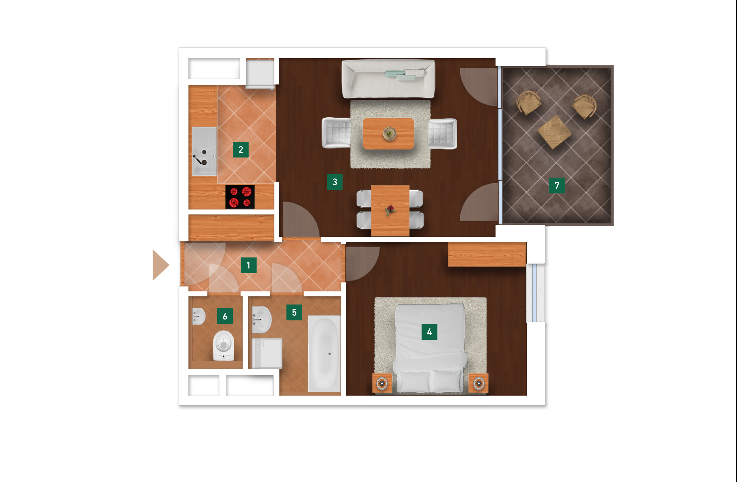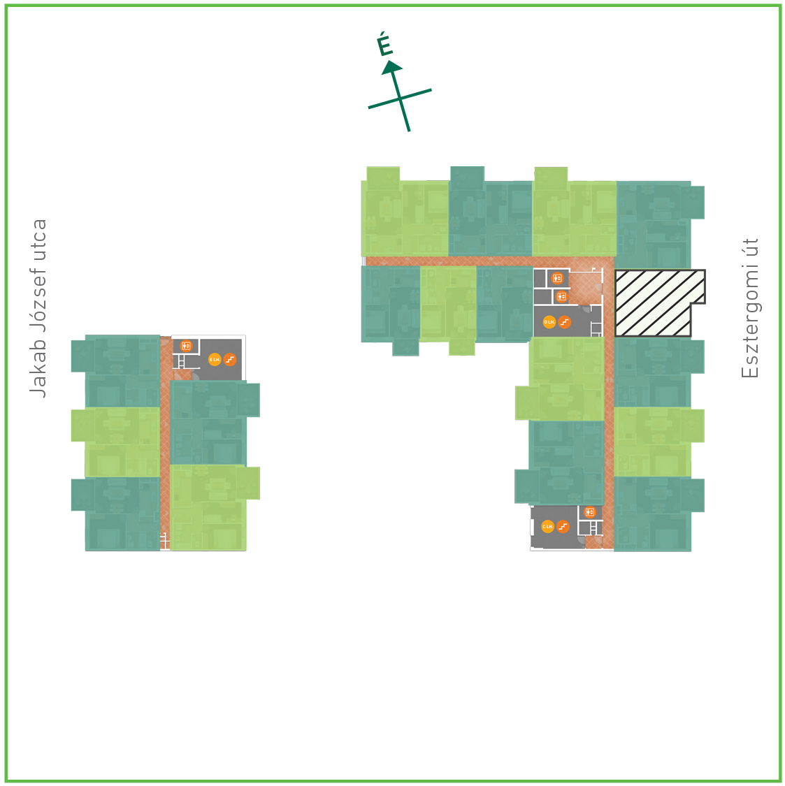 Az adatlapon megjelölt alaprajzi méretek vakolatlan falak közötti méretek, a kivitelezés során kismértékű méretváltozás lehetséges. Ezen dokumentációban közölt adatok a kiviteli tervek alapján kerültek megállapításra kizárólag tájékoztató jelleggel, nem minősülnek ajánlattételnek. Az alaprajzon feltüntetett bútorok tájékoztató jellegűek, azok rajzi elhelyezése nem feltétlenül tükrözi azok jövőbeni elhelyezhetőségét, illetve azok nem képzik a lakás részét.