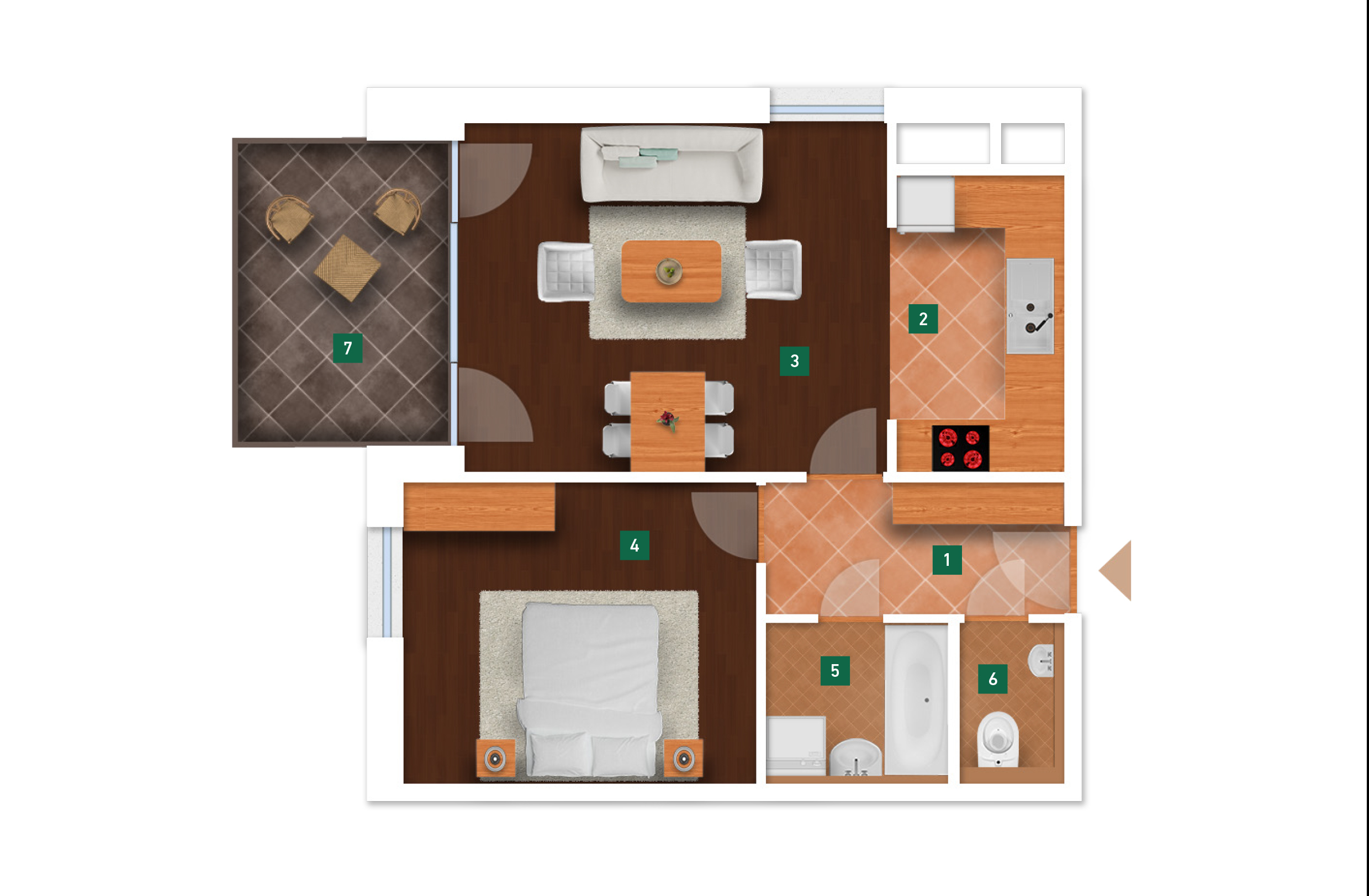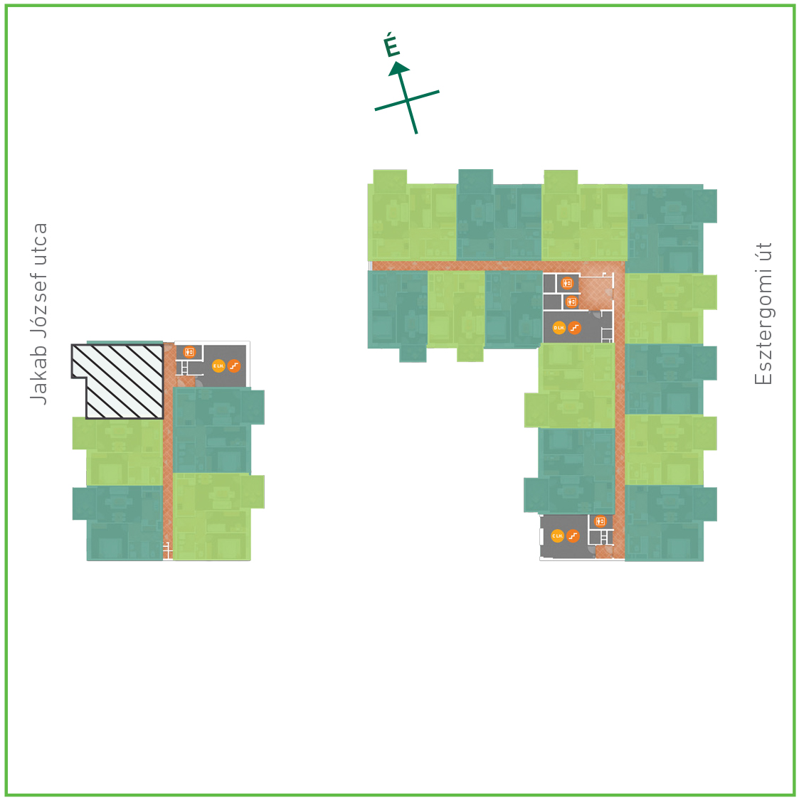 Az adatlapon megjelölt alaprajzi méretek vakolatlan falak közötti méretek, a kivitelezés során kismértékű méretváltozás lehetséges. Ezen dokumentációban közölt adatok a kiviteli tervek alapján kerültek megállapításra kizárólag tájékoztató jelleggel, nem minősülnek ajánlattételnek. Az alaprajzon feltüntetett bútorok tájékoztató jellegűek, azok rajzi elhelyezése nem feltétlenül tükrözi azok jövőbeni elhelyezhetőségét, illetve azok nem képzik a lakás részét.