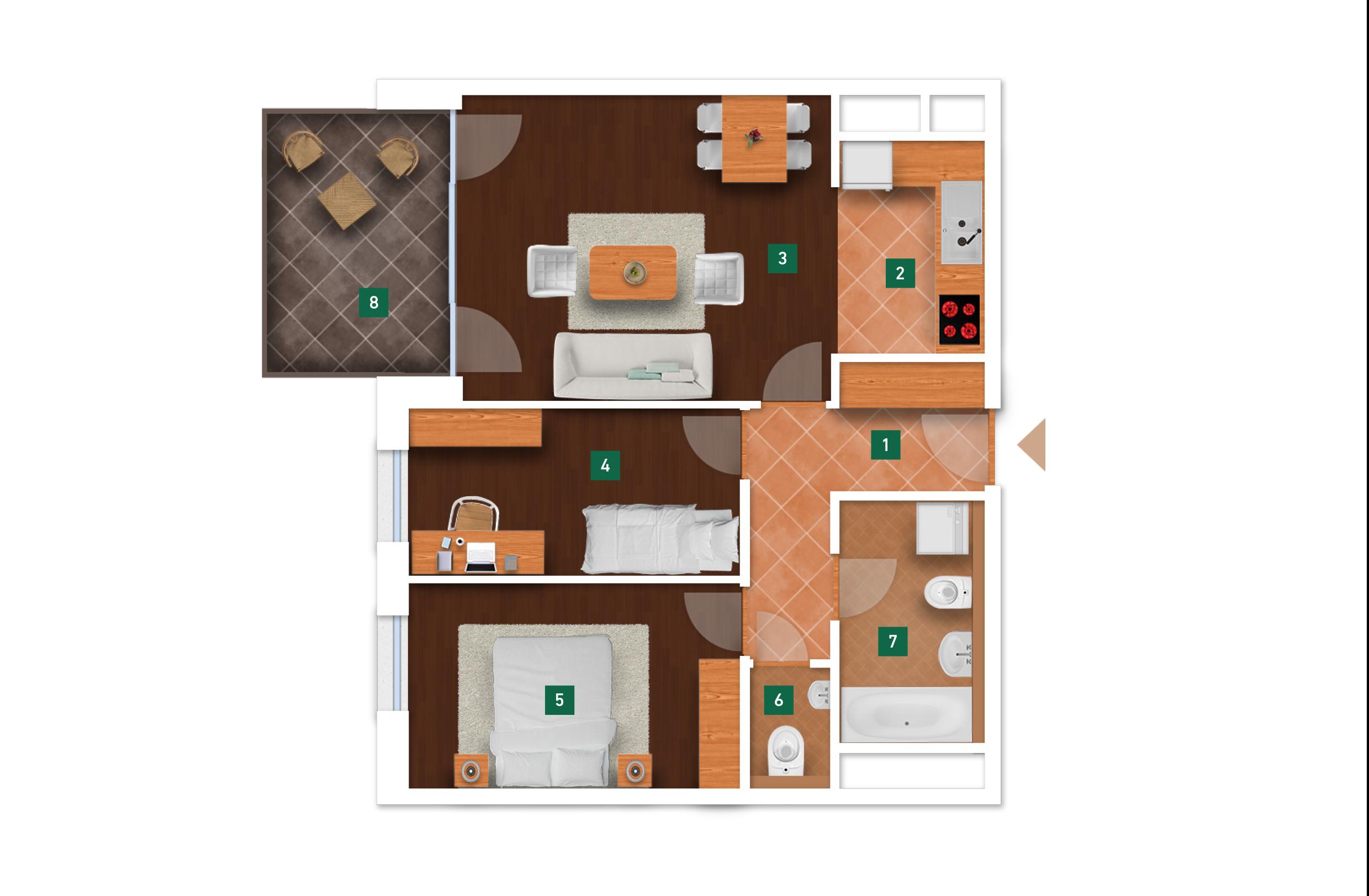 Az adatlapon megjelölt alaprajzi méretek vakolatlan falak közötti méretek, a kivitelezés során kismértékű méretváltozás lehetséges. Ezen dokumentációban közölt adatok a kiviteli tervek alapján kerültek megállapításra kizárólag tájékoztató jelleggel, nem minősülnek ajánlattételnek. Az alaprajzon feltüntetett bútorok tájékoztató jellegűek, azok rajzi elhelyezése nem feltétlenül tükrözi azok jövőbeni elhelyezhetőségét, illetve azok nem képzik a lakás részét.