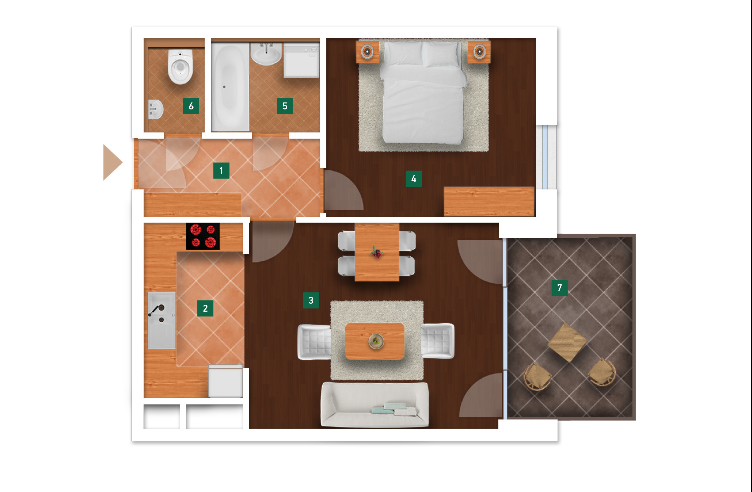 Az adatlapon megjelölt alaprajzi méretek vakolatlan falak közötti méretek, a kivitelezés során kismértékű méretváltozás lehetséges. Ezen dokumentációban közölt adatok a kiviteli tervek alapján kerültek megállapításra kizárólag tájékoztató jelleggel, nem minősülnek ajánlattételnek. Az alaprajzon feltüntetett bútorok tájékoztató jellegűek, azok rajzi elhelyezése nem feltétlenül tükrözi azok jövőbeni elhelyezhetőségét, illetve azok nem képzik a lakás részét.