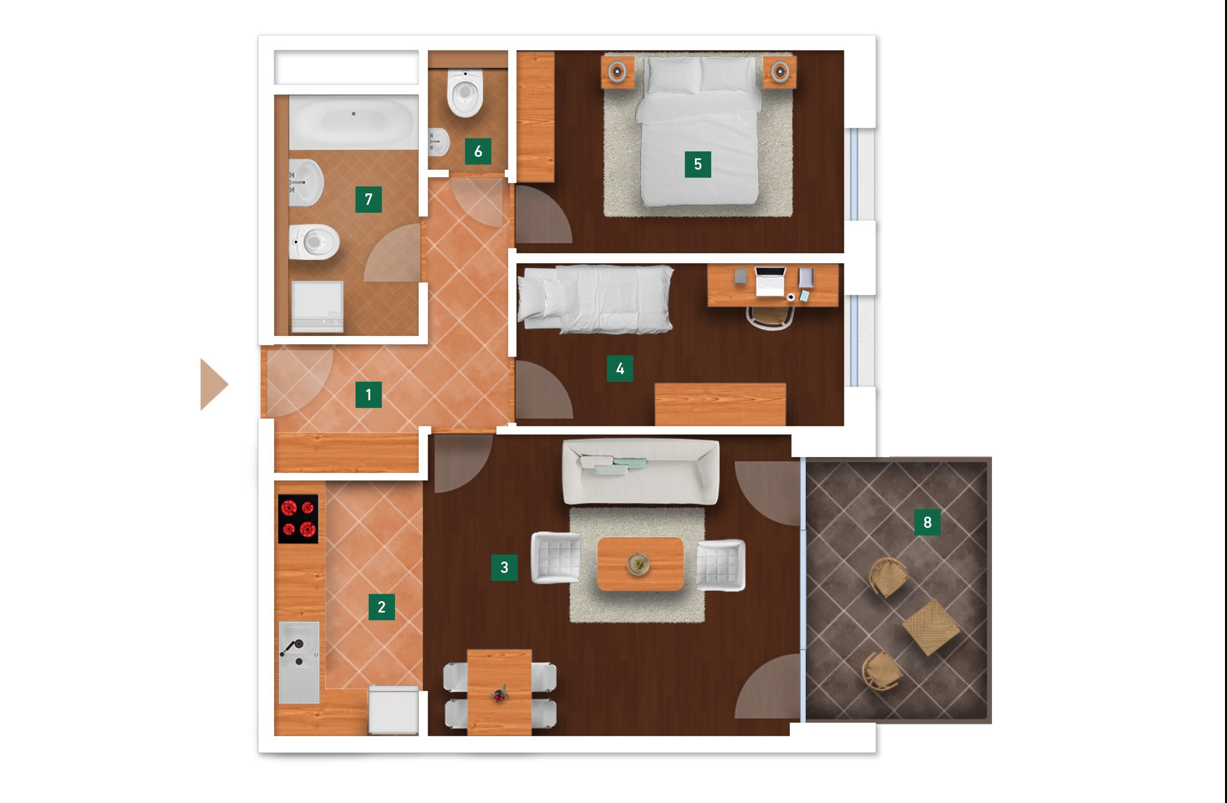 Az adatlapon megjelölt alaprajzi méretek vakolatlan falak közötti méretek, a kivitelezés során kismértékű méretváltozás lehetséges. Ezen dokumentációban közölt adatok a kiviteli tervek alapján kerültek megállapításra kizárólag tájékoztató jelleggel, nem minősülnek ajánlattételnek. Az alaprajzon feltüntetett bútorok tájékoztató jellegűek, azok rajzi elhelyezése nem feltétlenül tükrözi azok jövőbeni elhelyezhetőségét, illetve azok nem képzik a lakás részét.