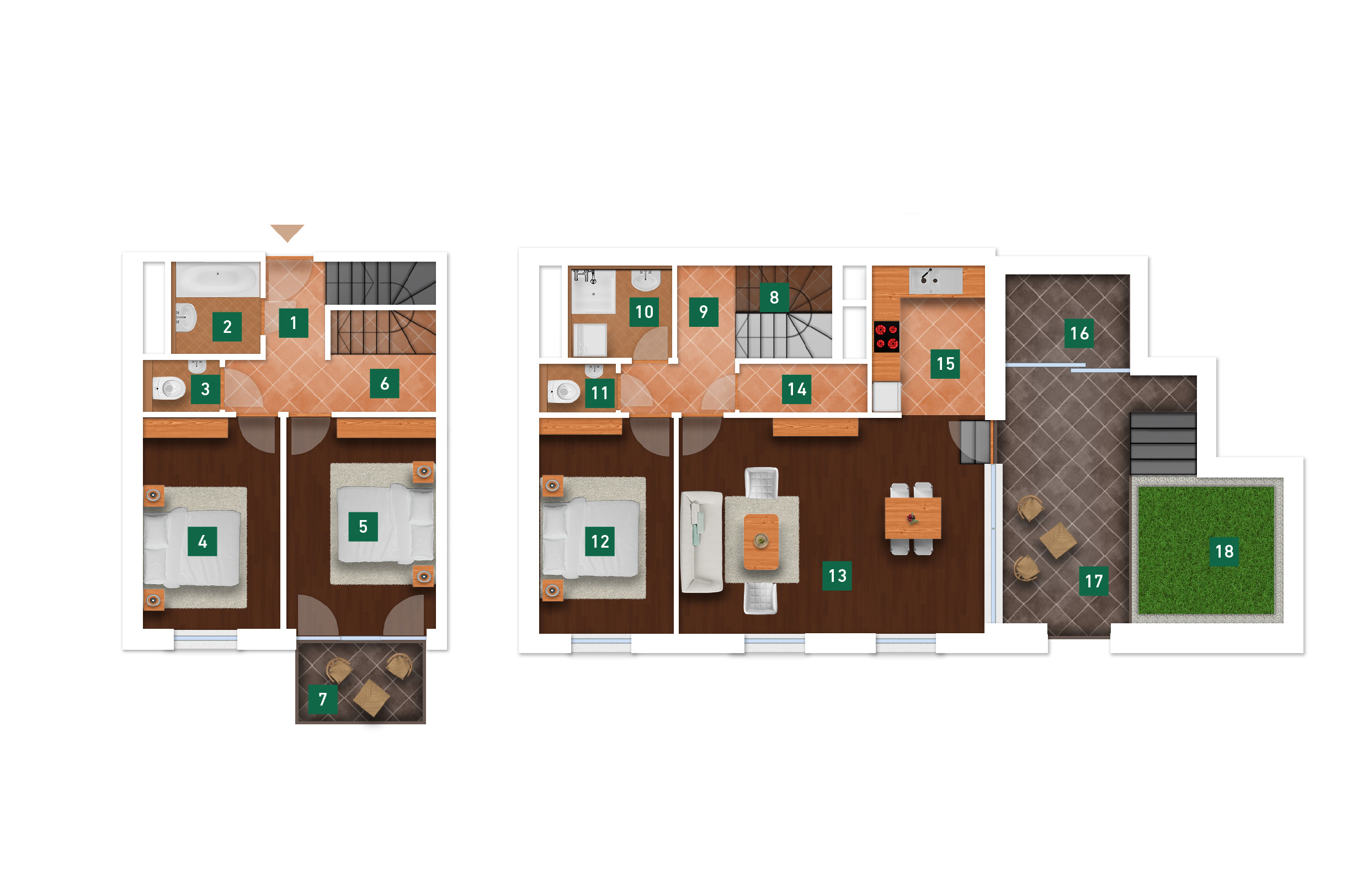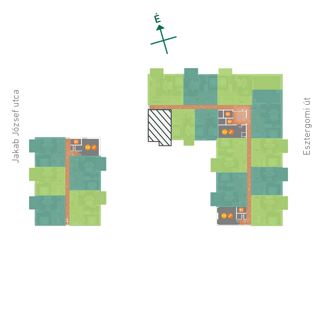 Az adatlapon megjelölt alaprajzi méretek vakolatlan falak közötti méretek, a kivitelezés során kismértékű méretváltozás lehetséges. Ezen dokumentációban közölt adatok a kiviteli tervek alapján kerültek megállapításra kizárólag tájékoztató jelleggel, nem minősülnek ajánlattételnek. Az alaprajzon feltüntetett bútorok tájékoztató jellegűek, azok rajzi elhelyezése nem feltétlenül tükrözi azok jövőbeni elhelyezhetőségét, illetve azok nem képzik a lakás részét.