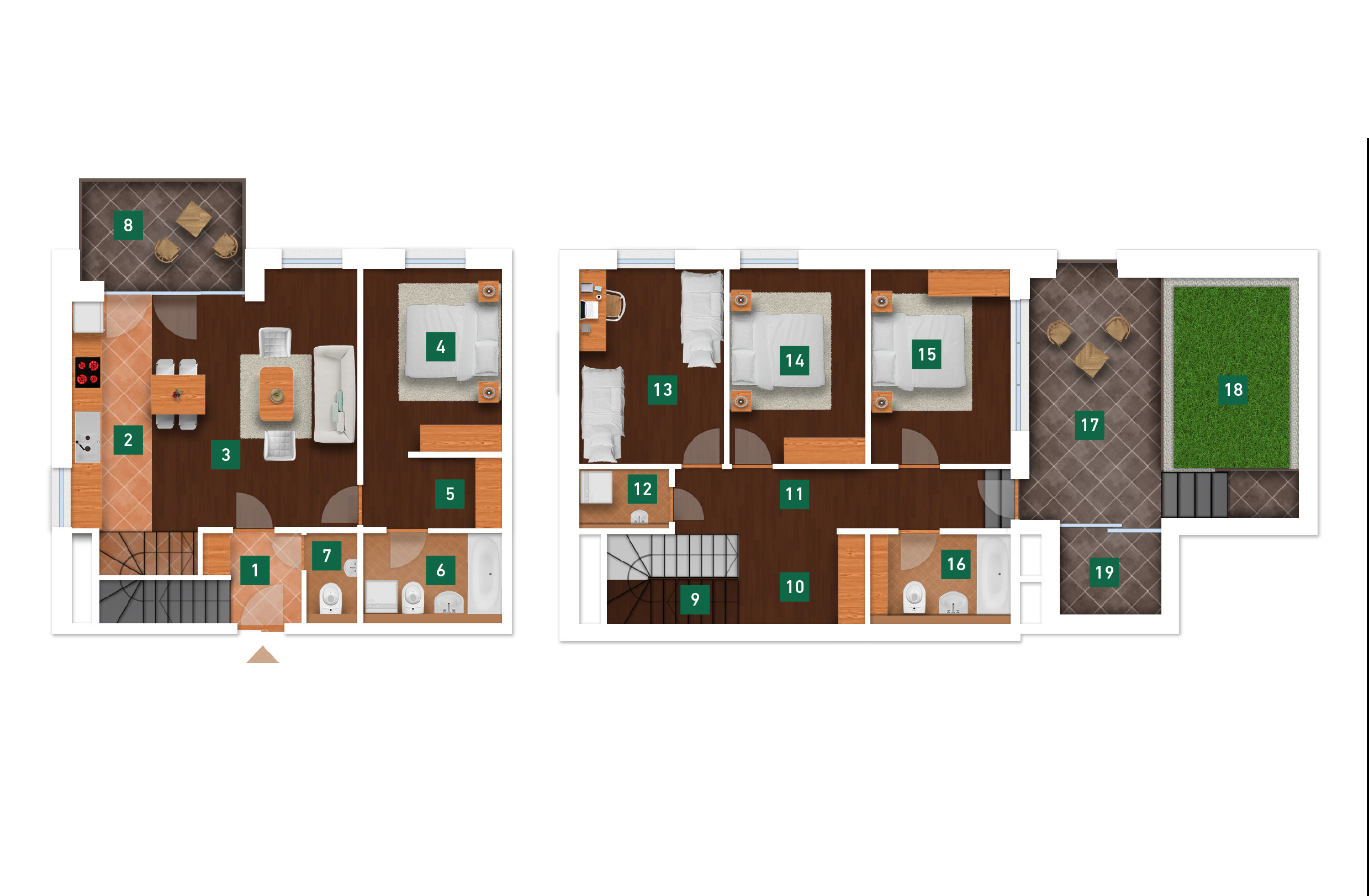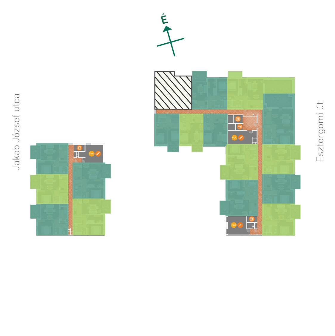 Az adatlapon megjelölt alaprajzi méretek vakolatlan falak közötti méretek, a kivitelezés során kismértékű méretváltozás lehetséges. Ezen dokumentációban közölt adatok a kiviteli tervek alapján kerültek megállapításra kizárólag tájékoztató jelleggel, nem minősülnek ajánlattételnek. Az alaprajzon feltüntetett bútorok tájékoztató jellegűek, azok rajzi elhelyezése nem feltétlenül tükrözi azok jövőbeni elhelyezhetőségét, illetve azok nem képzik a lakás részét.