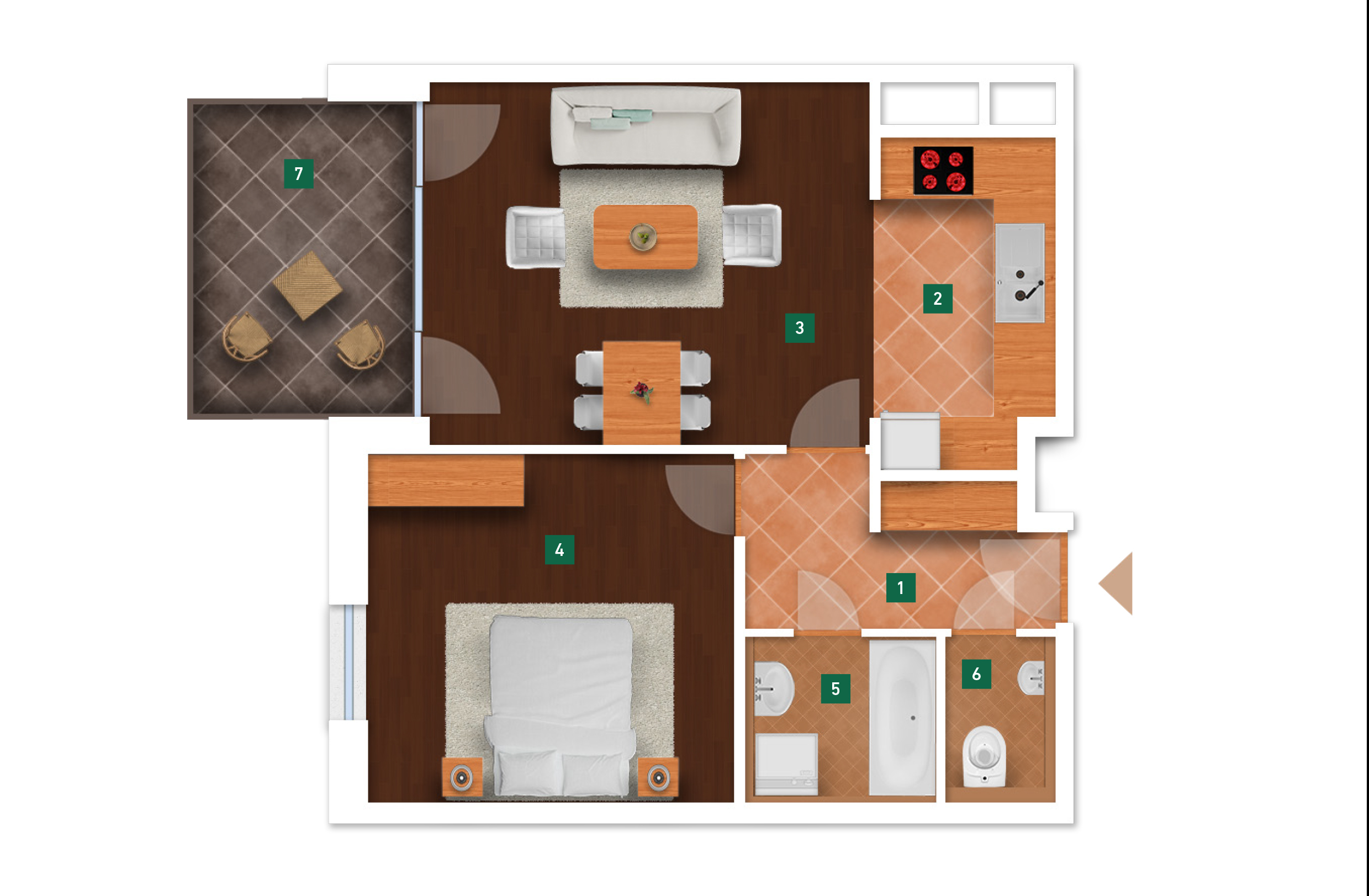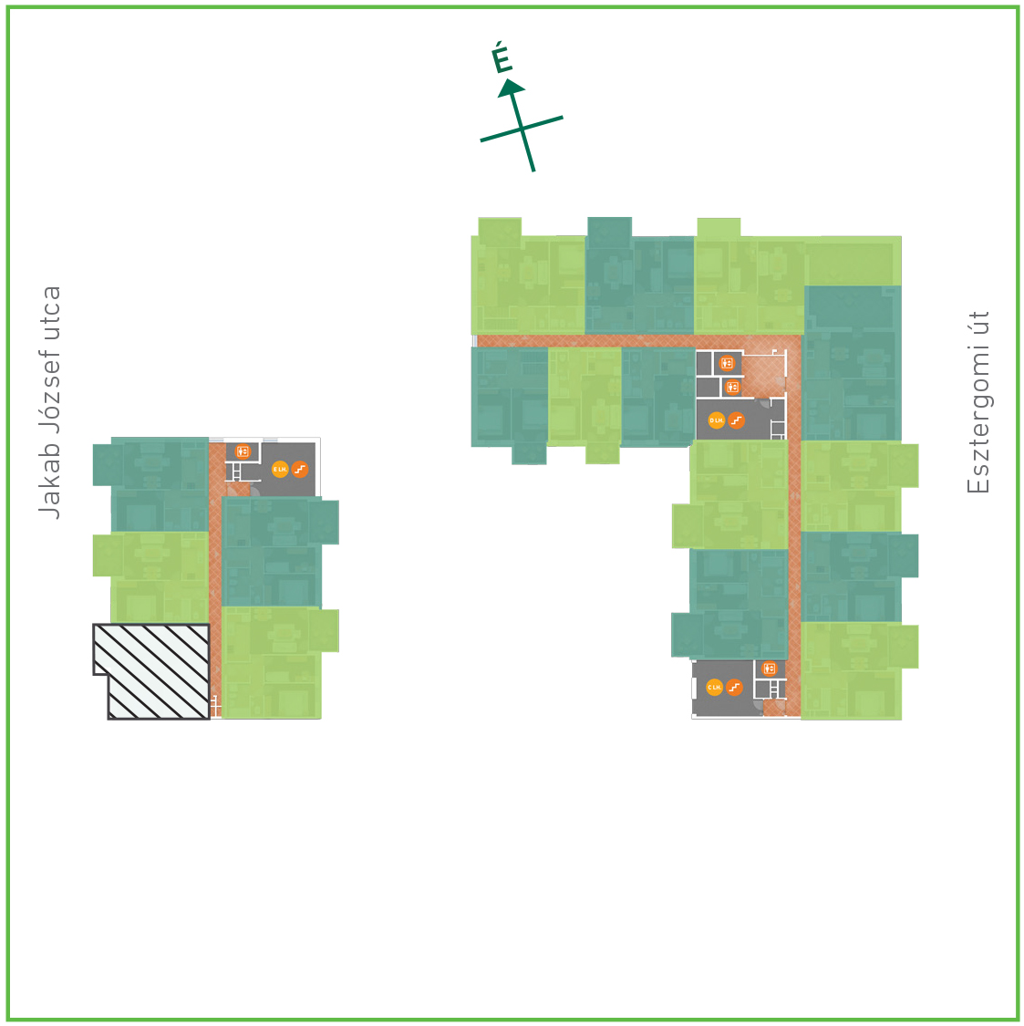 Az adatlapon megjelölt alaprajzi méretek vakolatlan falak közötti méretek, a kivitelezés során kismértékű méretváltozás lehetséges. Ezen dokumentációban közölt adatok a kiviteli tervek alapján kerültek megállapításra kizárólag tájékoztató jelleggel, nem minősülnek ajánlattételnek. Az alaprajzon feltüntetett bútorok tájékoztató jellegűek, azok rajzi elhelyezése nem feltétlenül tükrözi azok jövőbeni elhelyezhetőségét, illetve azok nem képzik a lakás részét.