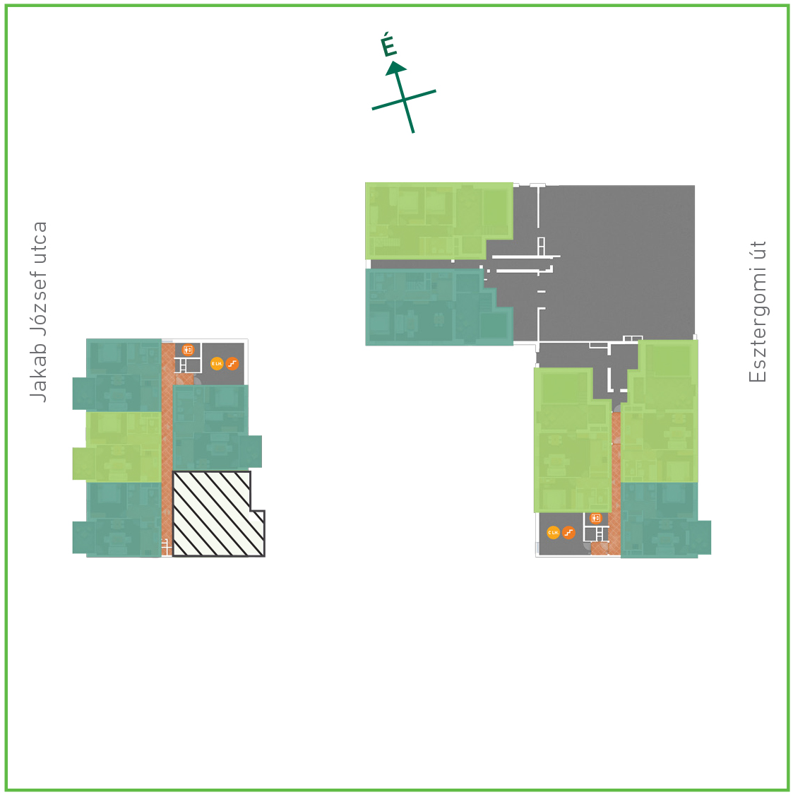 Az adatlapon megjelölt alaprajzi méretek vakolatlan falak közötti méretek, a kivitelezés során kismértékű méretváltozás lehetséges. Ezen dokumentációban közölt adatok a kiviteli tervek alapján kerültek megállapításra kizárólag tájékoztató jelleggel, nem minősülnek ajánlattételnek. Az alaprajzon feltüntetett bútorok tájékoztató jellegűek, azok rajzi elhelyezése nem feltétlenül tükrözi azok jövőbeni elhelyezhetőségét, illetve azok nem képzik a lakás részét.