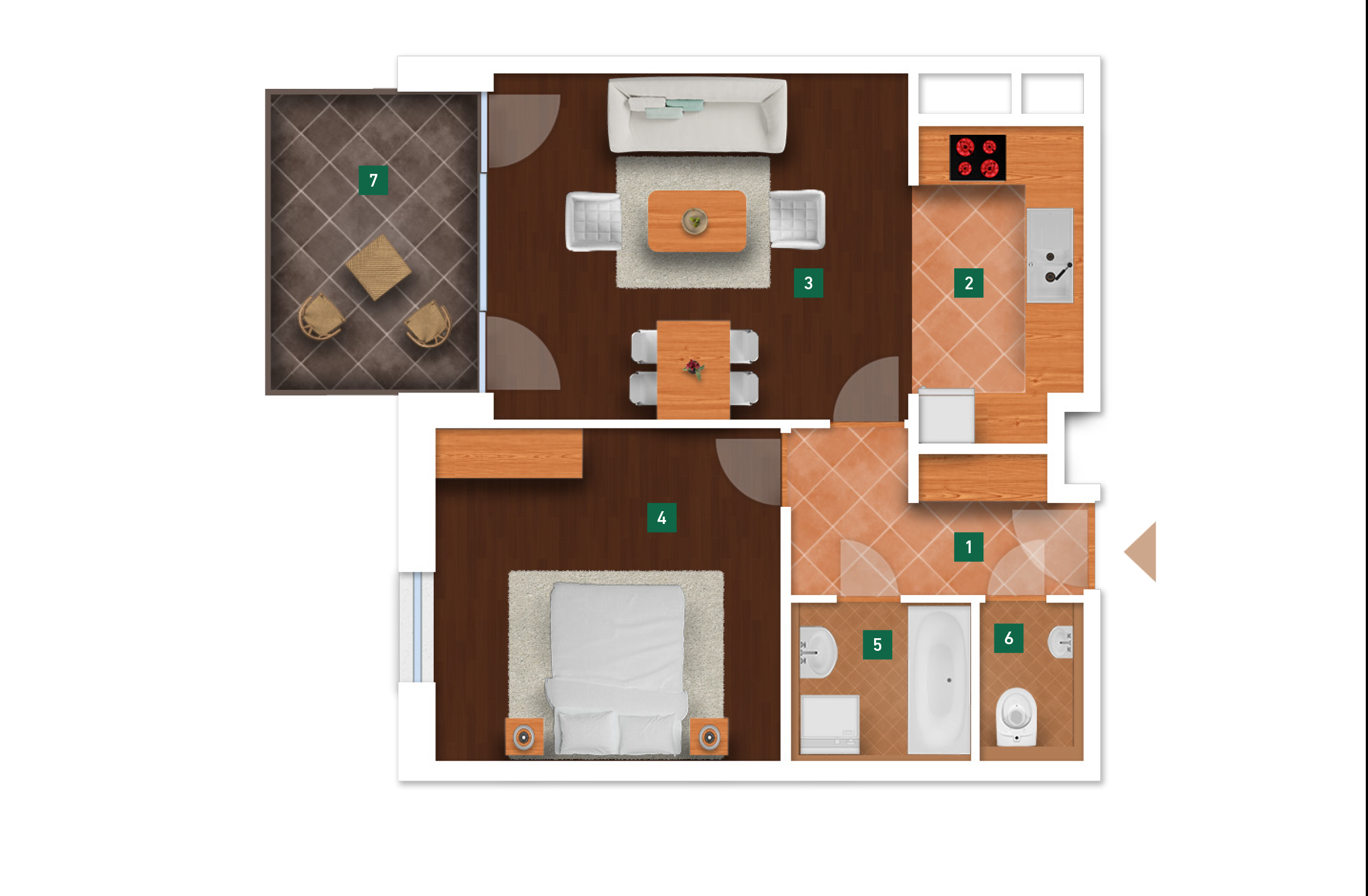 Az adatlapon megjelölt alaprajzi méretek vakolatlan falak közötti méretek, a kivitelezés során kismértékű méretváltozás lehetséges. Ezen dokumentációban közölt adatok a kiviteli tervek alapján kerültek megállapításra kizárólag tájékoztató jelleggel, nem minősülnek ajánlattételnek. Az alaprajzon feltüntetett bútorok tájékoztató jellegűek, azok rajzi elhelyezése nem feltétlenül tükrözi azok jövőbeni elhelyezhetőségét, illetve azok nem képzik a lakás részét.