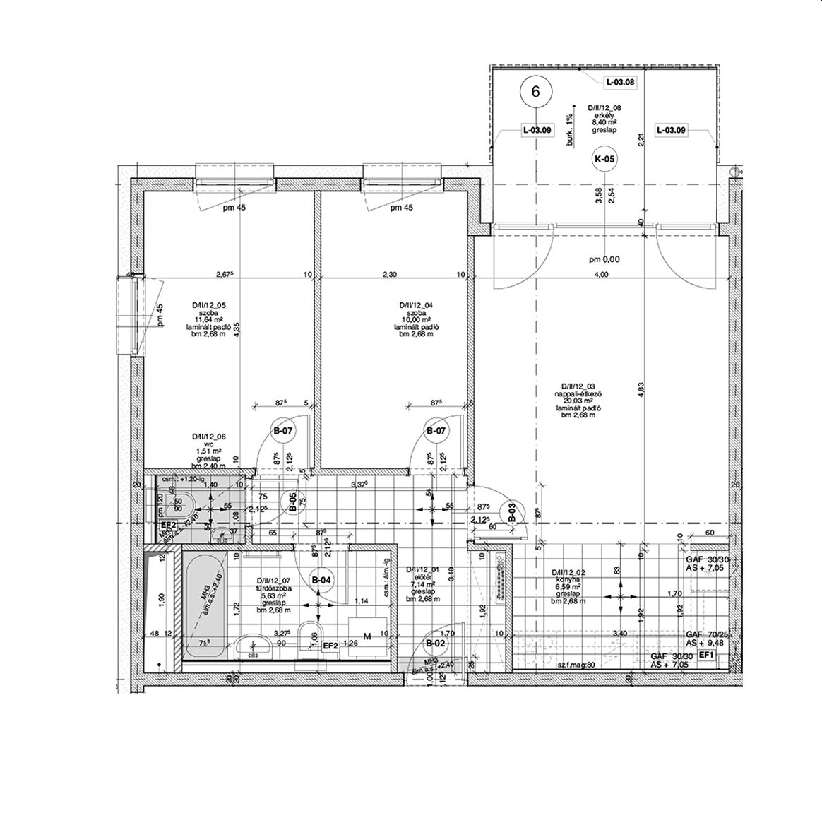 Az adatlapon megjelölt alaprajzi méretek vakolatlan falak közötti méretek, a kivitelezés során kismértékű méretváltozás lehetséges. Ezen dokumentációban közölt adatok a kiviteli tervek alapján kerültek megállapításra kizárólag tájékoztató jelleggel, nem minősülnek ajánlattételnek. Az alaprajzon feltüntetett bútorok tájékoztató jellegűek, azok rajzi elhelyezése nem feltétlenül tükrözi azok jövőbeni elhelyezhetőségét, illetve azok nem képzik a lakás részét.