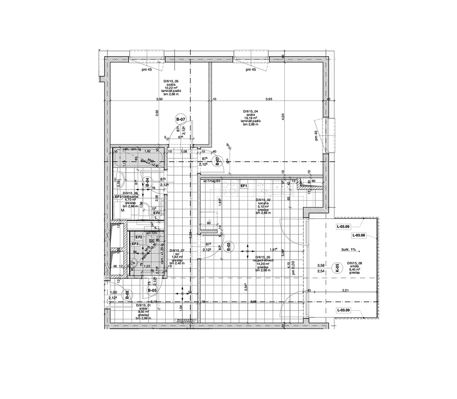 Az adatlapon megjelölt alaprajzi méretek vakolatlan falak közötti méretek, a kivitelezés során kismértékű méretváltozás lehetséges. Ezen dokumentációban közölt adatok a kiviteli tervek alapján kerültek megállapításra kizárólag tájékoztató jelleggel, nem minősülnek ajánlattételnek. Az alaprajzon feltüntetett bútorok tájékoztató jellegűek, azok rajzi elhelyezése nem feltétlenül tükrözi azok jövőbeni elhelyezhetőségét, illetve azok nem képzik a lakás részét.