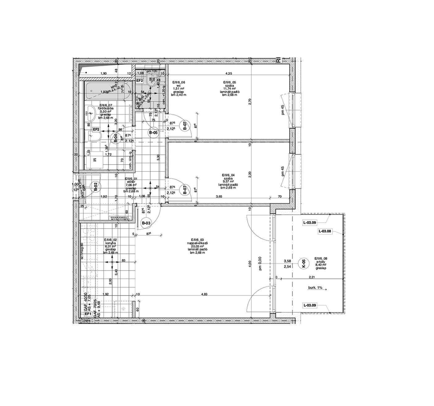 Az adatlapon megjelölt alaprajzi méretek vakolatlan falak közötti méretek, a kivitelezés során kismértékű méretváltozás lehetséges. Ezen dokumentációban közölt adatok a kiviteli tervek alapján kerültek megállapításra kizárólag tájékoztató jelleggel, nem minősülnek ajánlattételnek. Az alaprajzon feltüntetett bútorok tájékoztató jellegűek, azok rajzi elhelyezése nem feltétlenül tükrözi azok jövőbeni elhelyezhetőségét, illetve azok nem képzik a lakás részét.